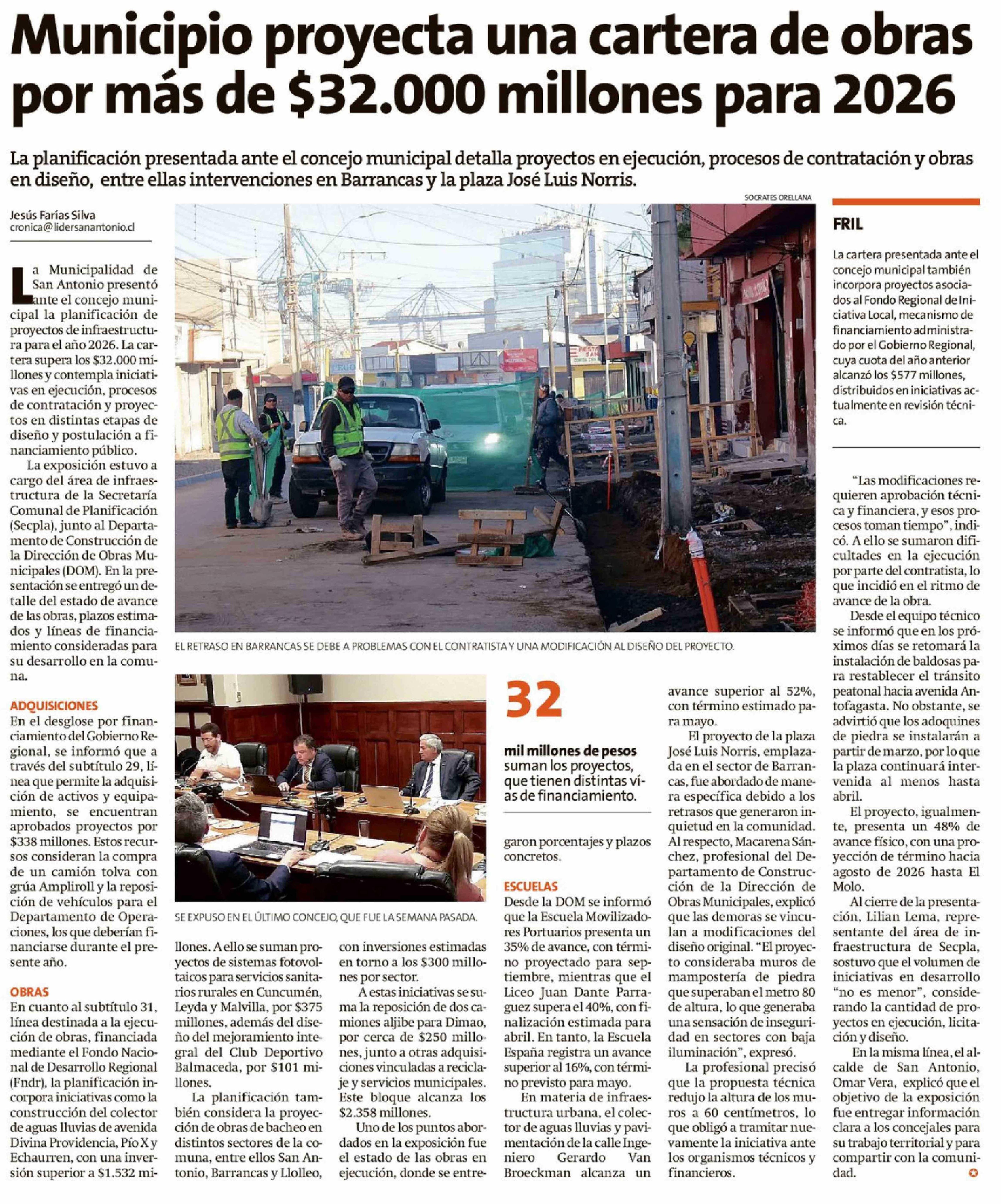 | Título: | Municipio proyecta una cartera de obras por más de $32.000 millones para 2026 |