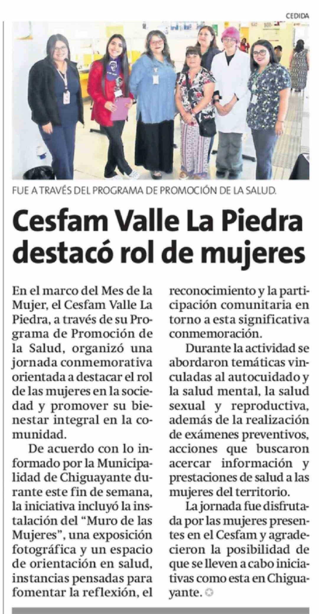 | Título: | Cesfam Valle La Piedra destacó rol de mujeres |