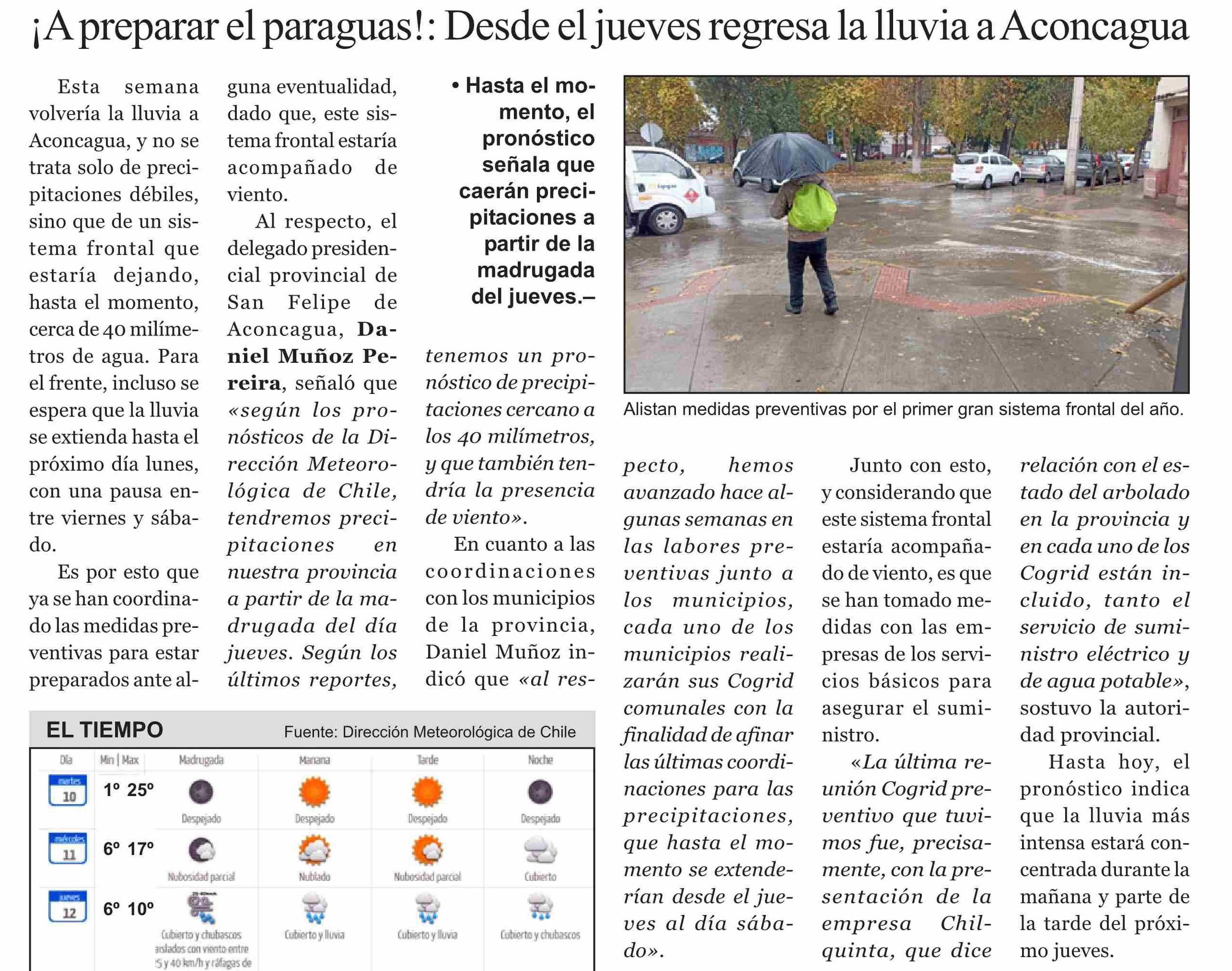 | Título: | ¡A preparar el paraguas!: Desde el jueves regresa la lluvia a Aconcagua |