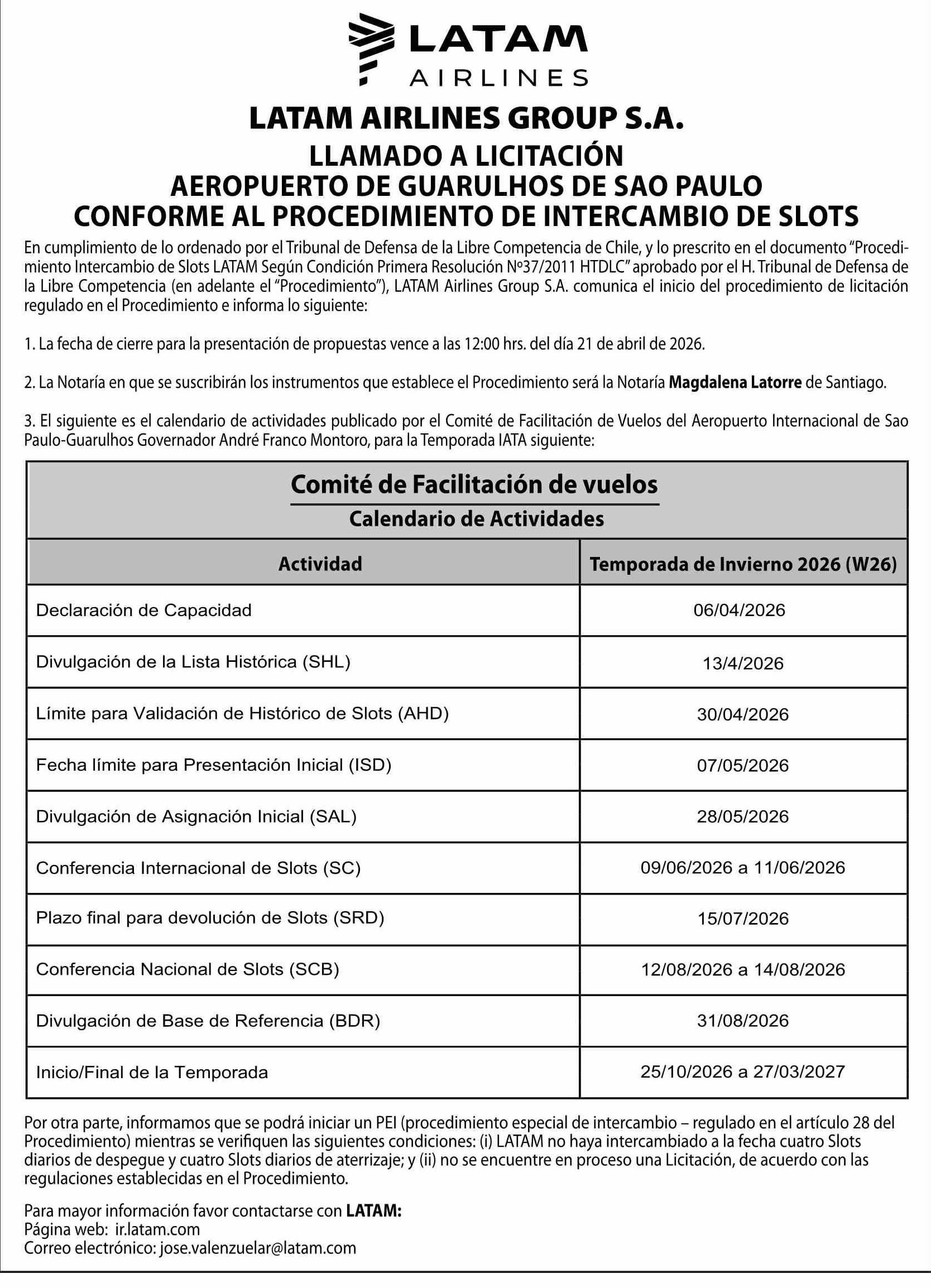 LATAM AIRLINES GROUP S.A. 31-03-2026 El Mercurio |