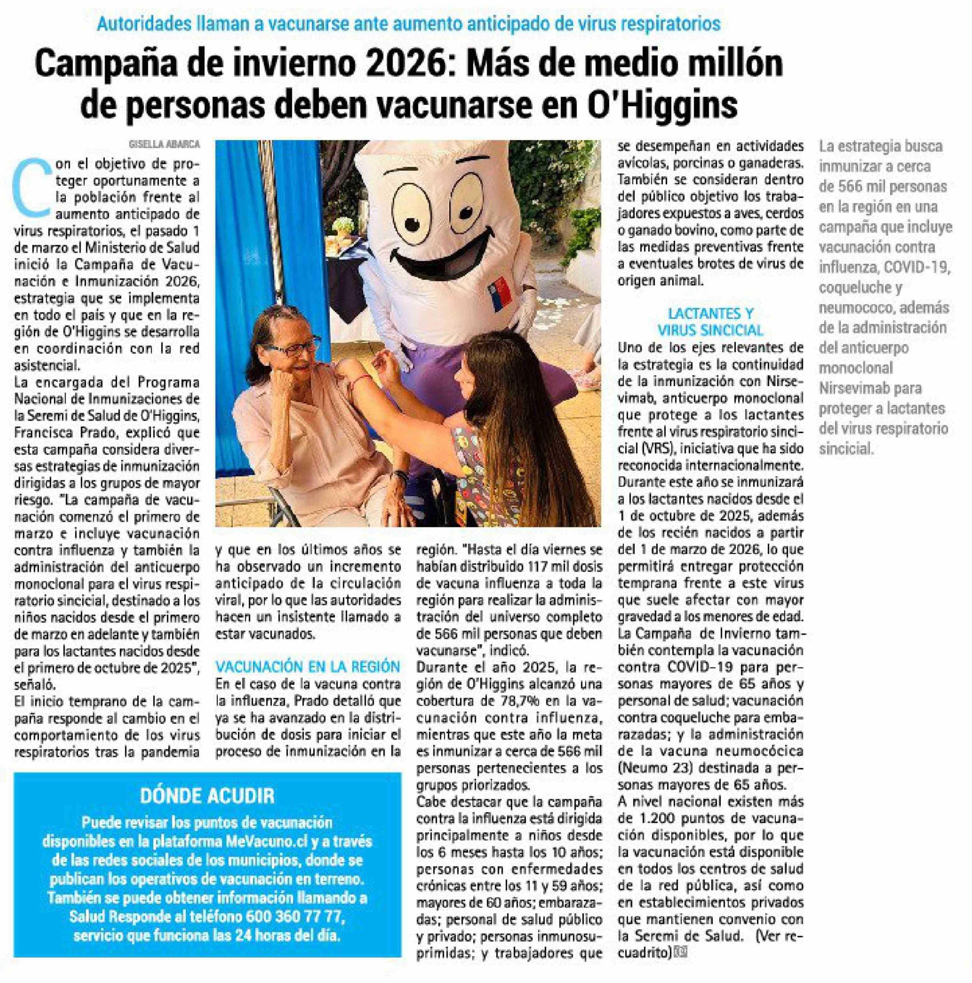 Título: Campaña de invierno 2026: Más de medio millón de personas deben vacunarse en O'Higgins