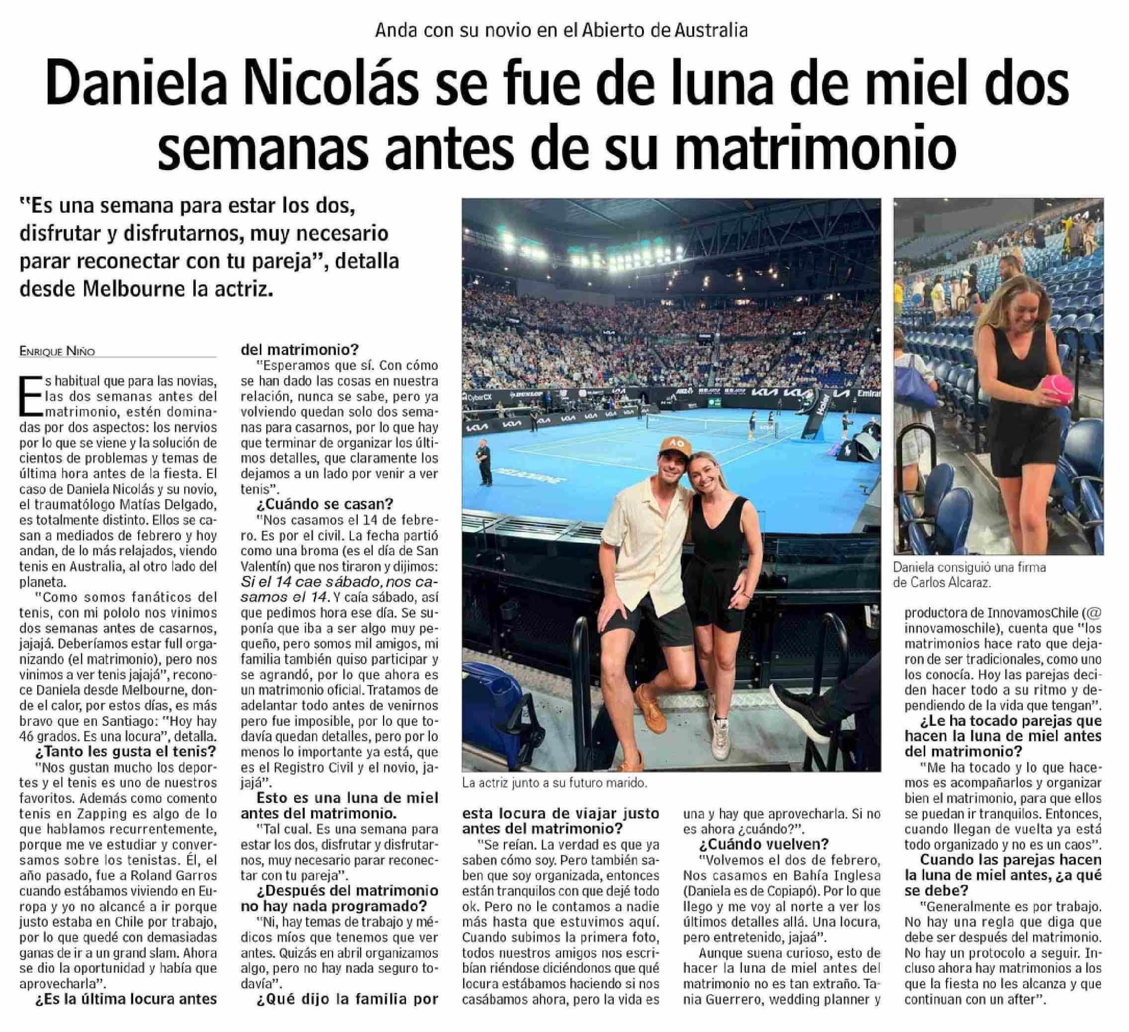 Daniela Nicolás se fue de luna de miel dos semanas antes de su matrimonio 28-01-2026 Las Últimas Noticias |