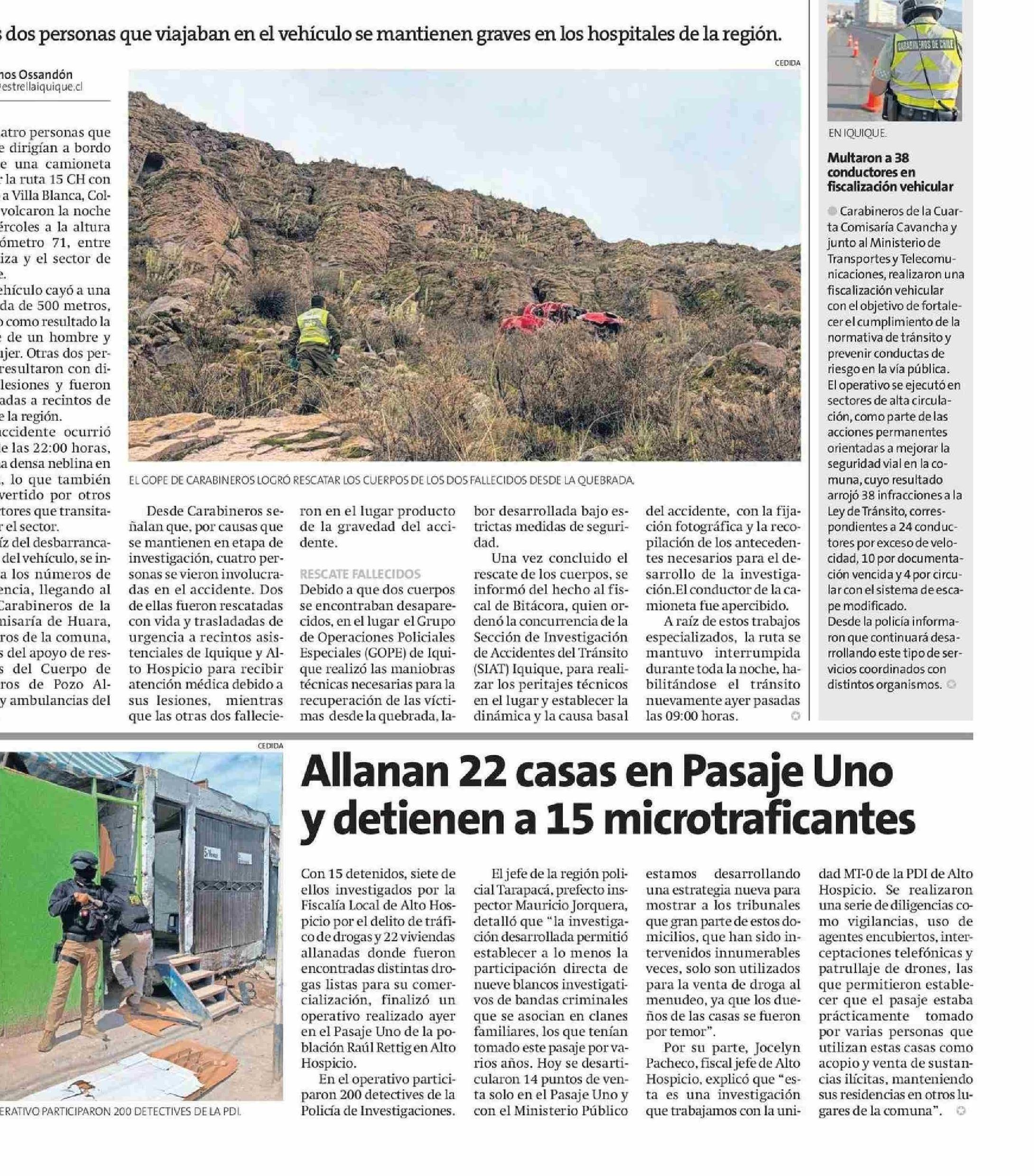 Dos fallecidos tras desbarrancar camioneta en Ruta 15-CH 30-01-2026 La Estrella de Iquique |