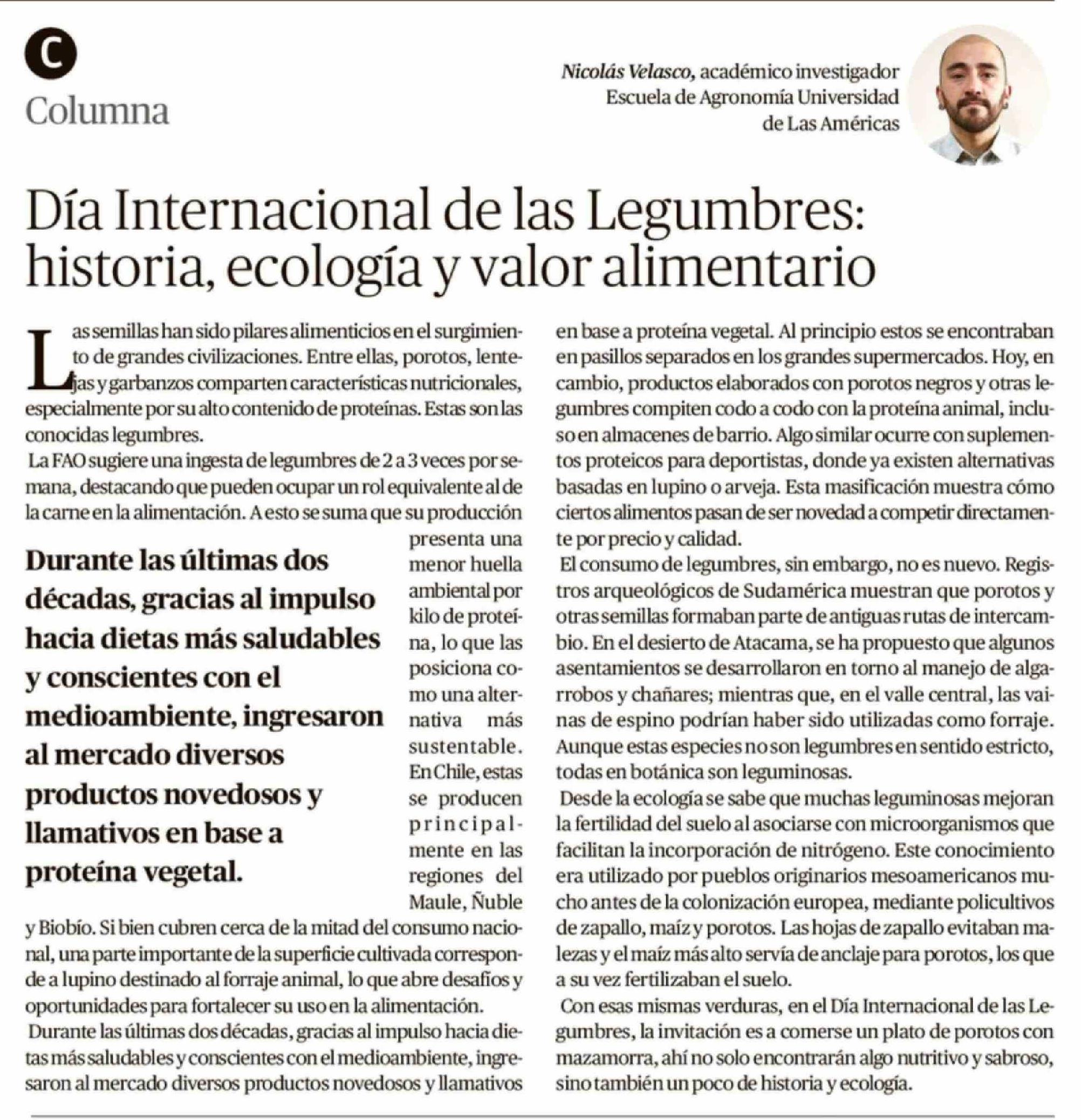 Título: Columnas de Opinión: Día Internacional de las Legumbres: historia, ecología y valor alimentario