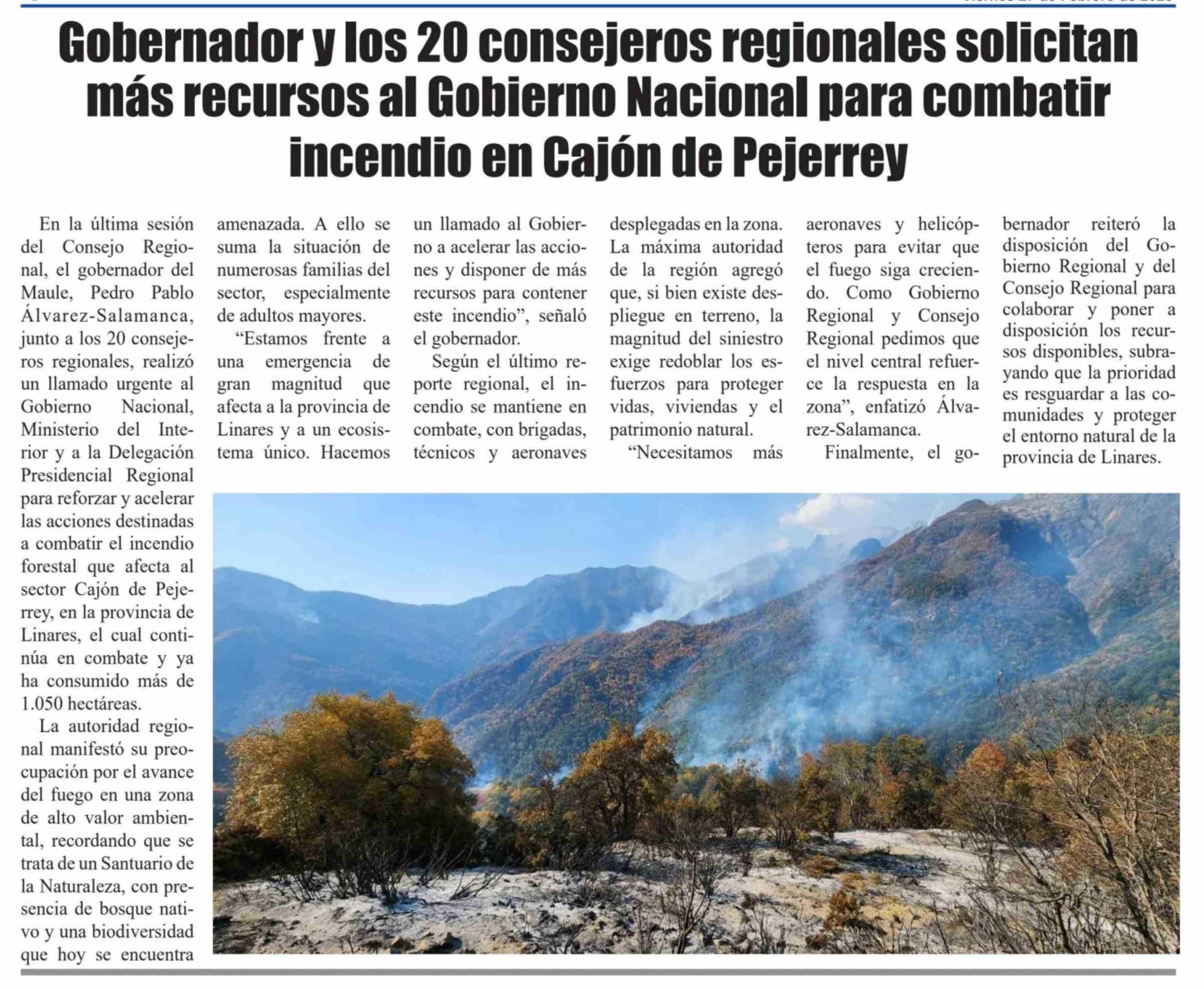 Gobernador y los 20 consejeros regionales solicitan más recursos al Gobierno Nacional para combatir incendio en Cajón de Pejerrey 27-02-2026 El Heraldo |