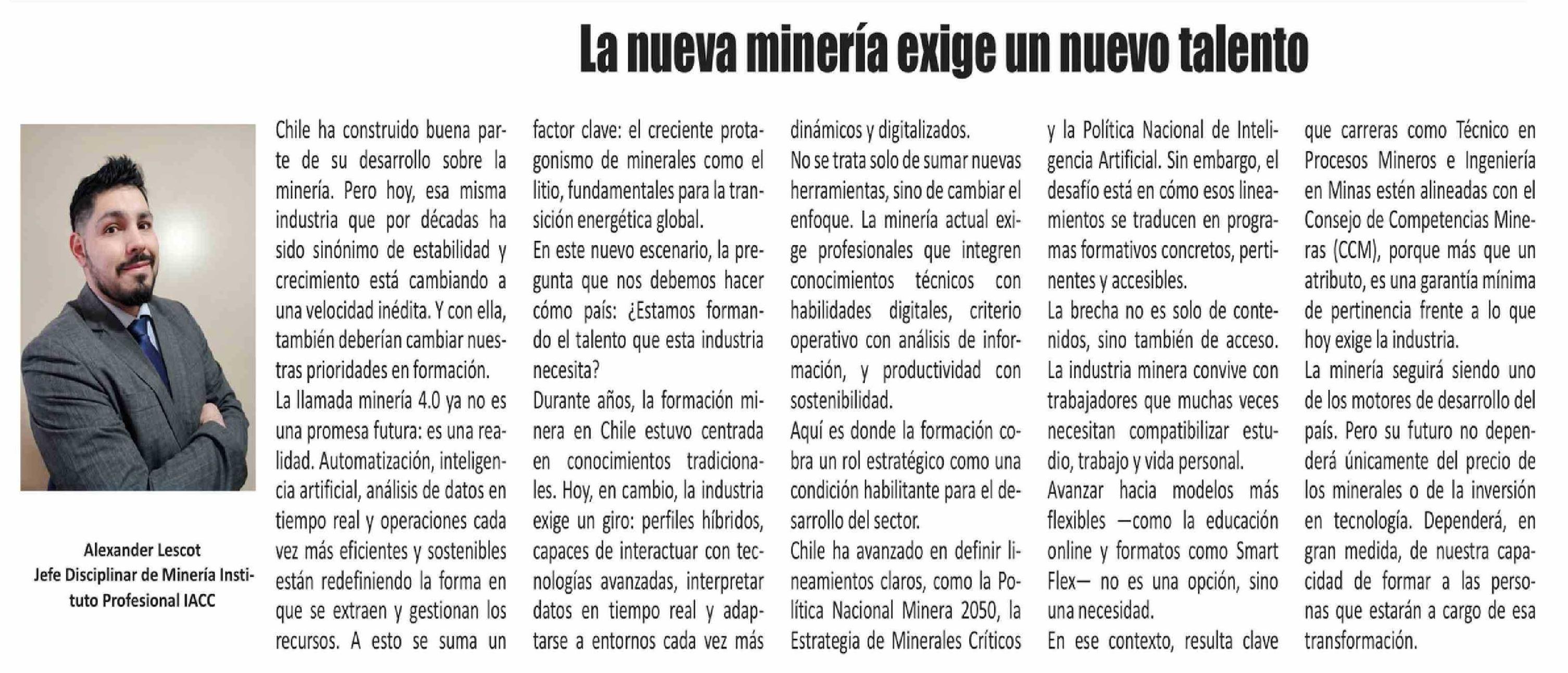 Título: Columnas de Opinión: La nueva minería exige un nuevo talento