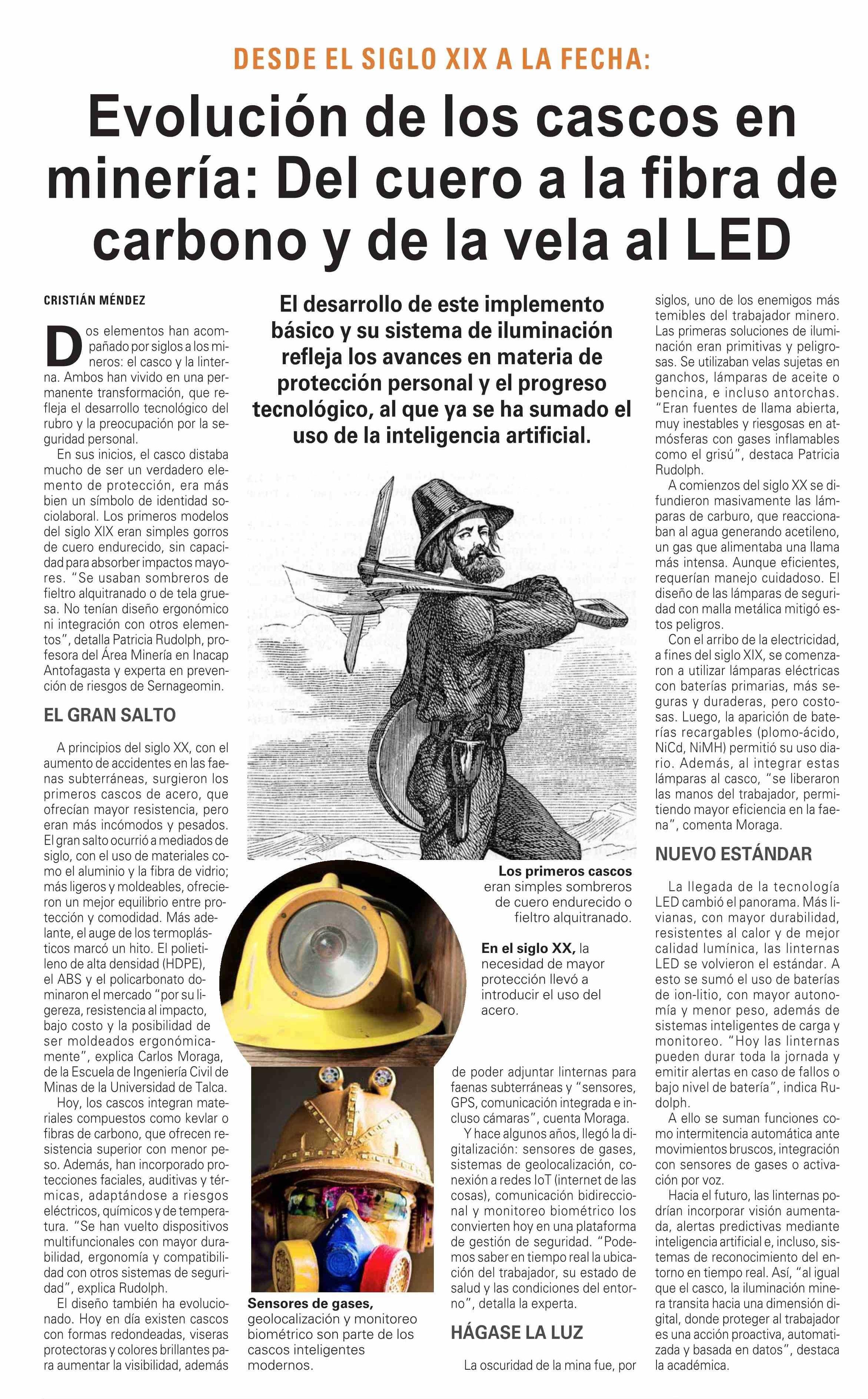 Evolución de los cascos en minería: Del cuero a la fibra de carbono y de la vela al LED 20-05-2025 El Mercurio |