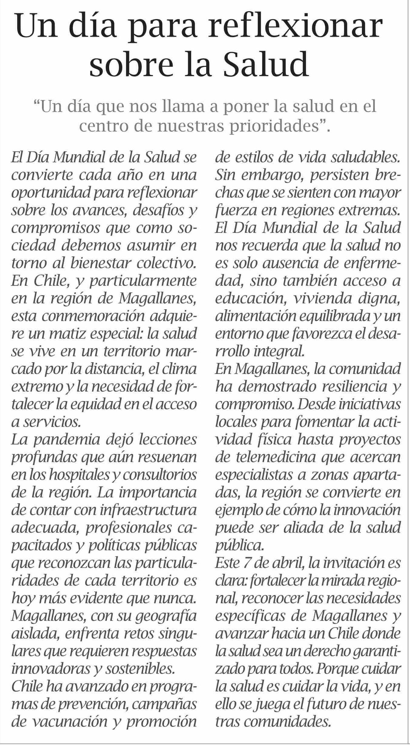Editorial: Un día para reflexionar sobre la salud 07-04-2026 El Pingüino |