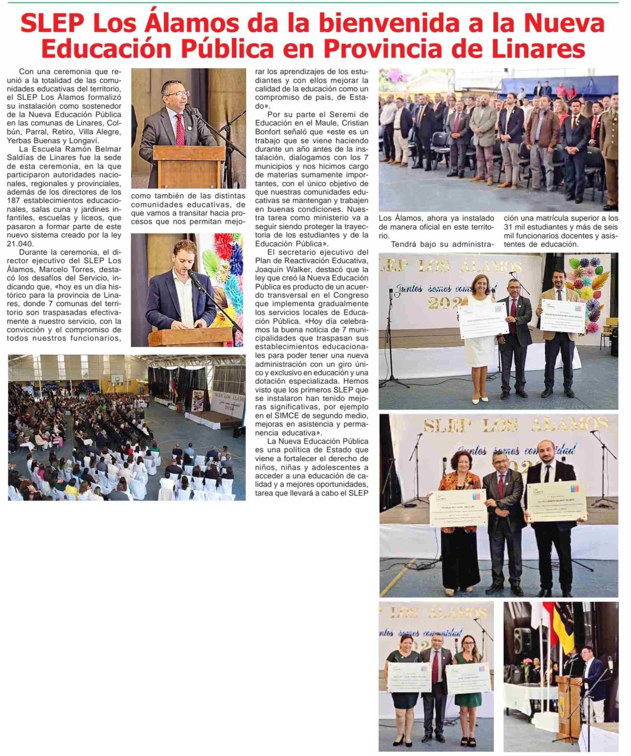 | Título: | SLEP Los Álamos da la bienvenida a la Nueva Educación Pública en Provincia de Linares |