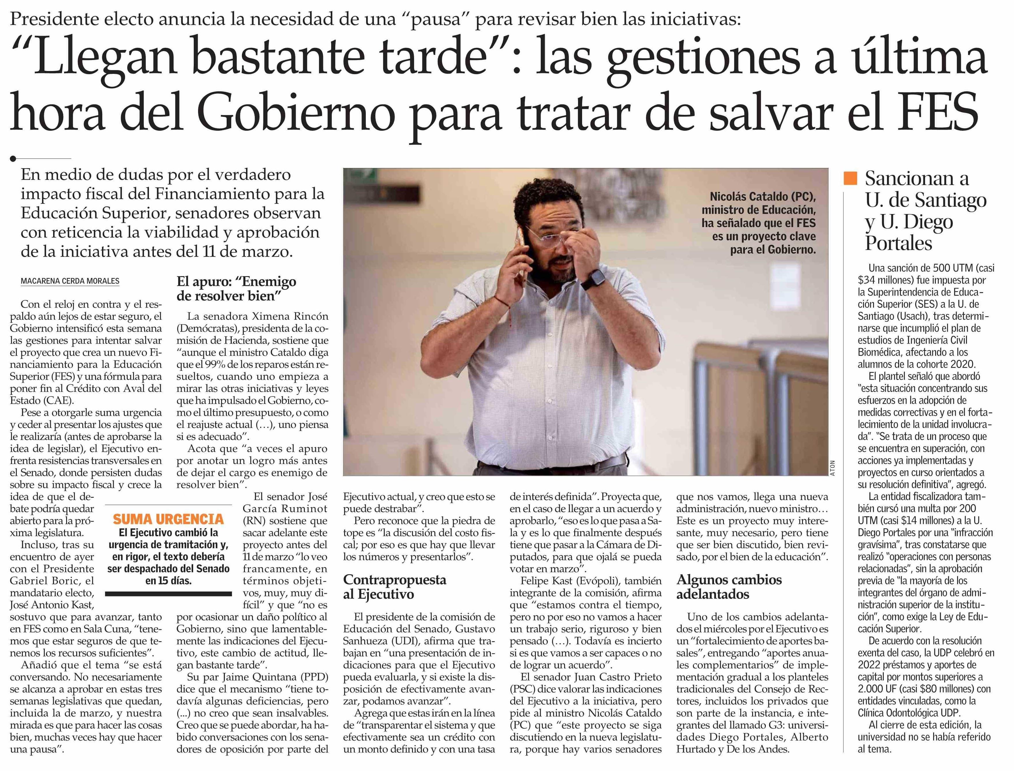 “Llegan bastante tarde”: las gestiones a última hora del Gobierno para tratar de salvar el FES 16-01-2026 El Mercurio |
