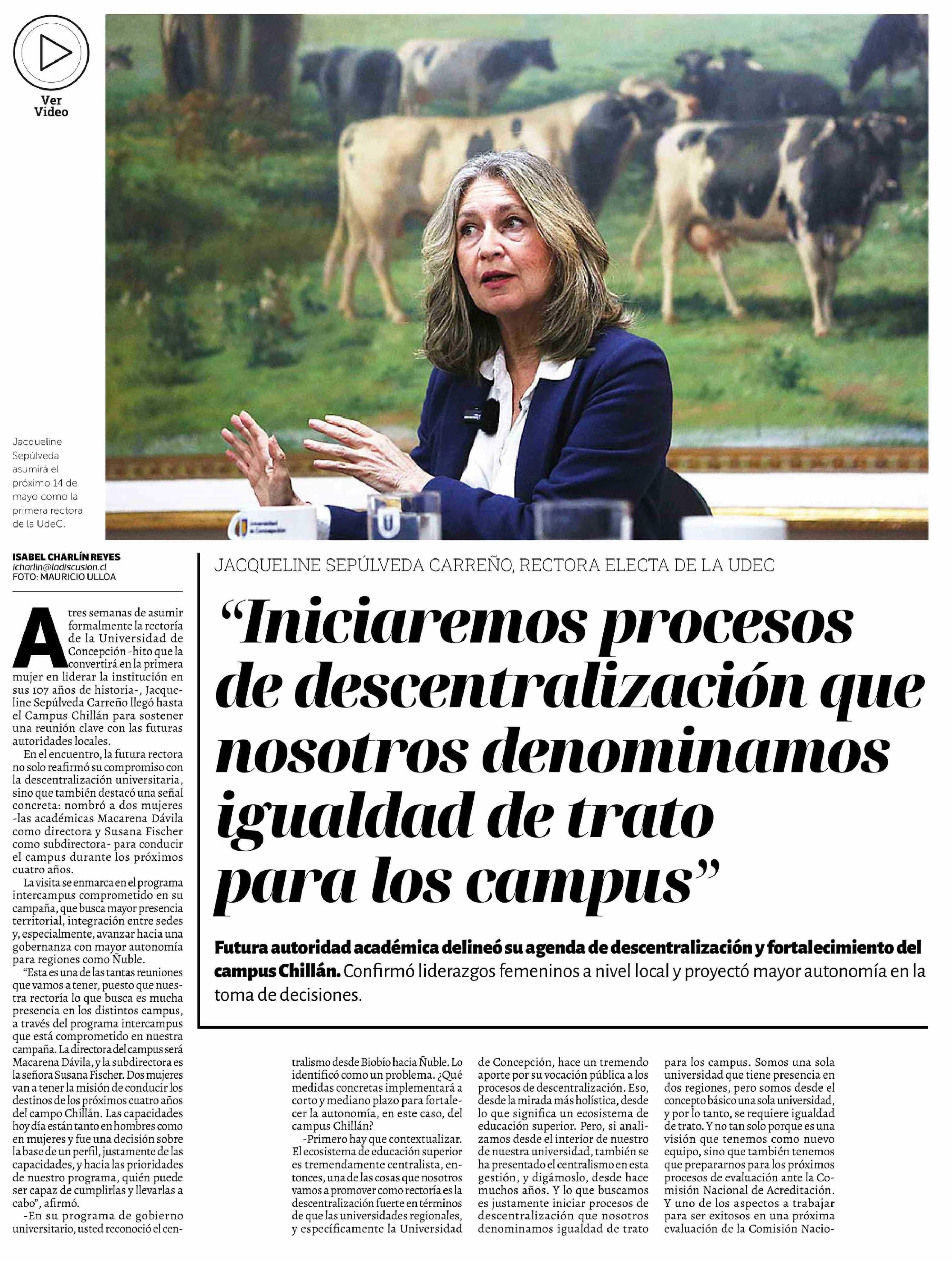 Título: "Iniciaremos procesos de descentralización que nosotros denominamos igualdad de trato para los campus"