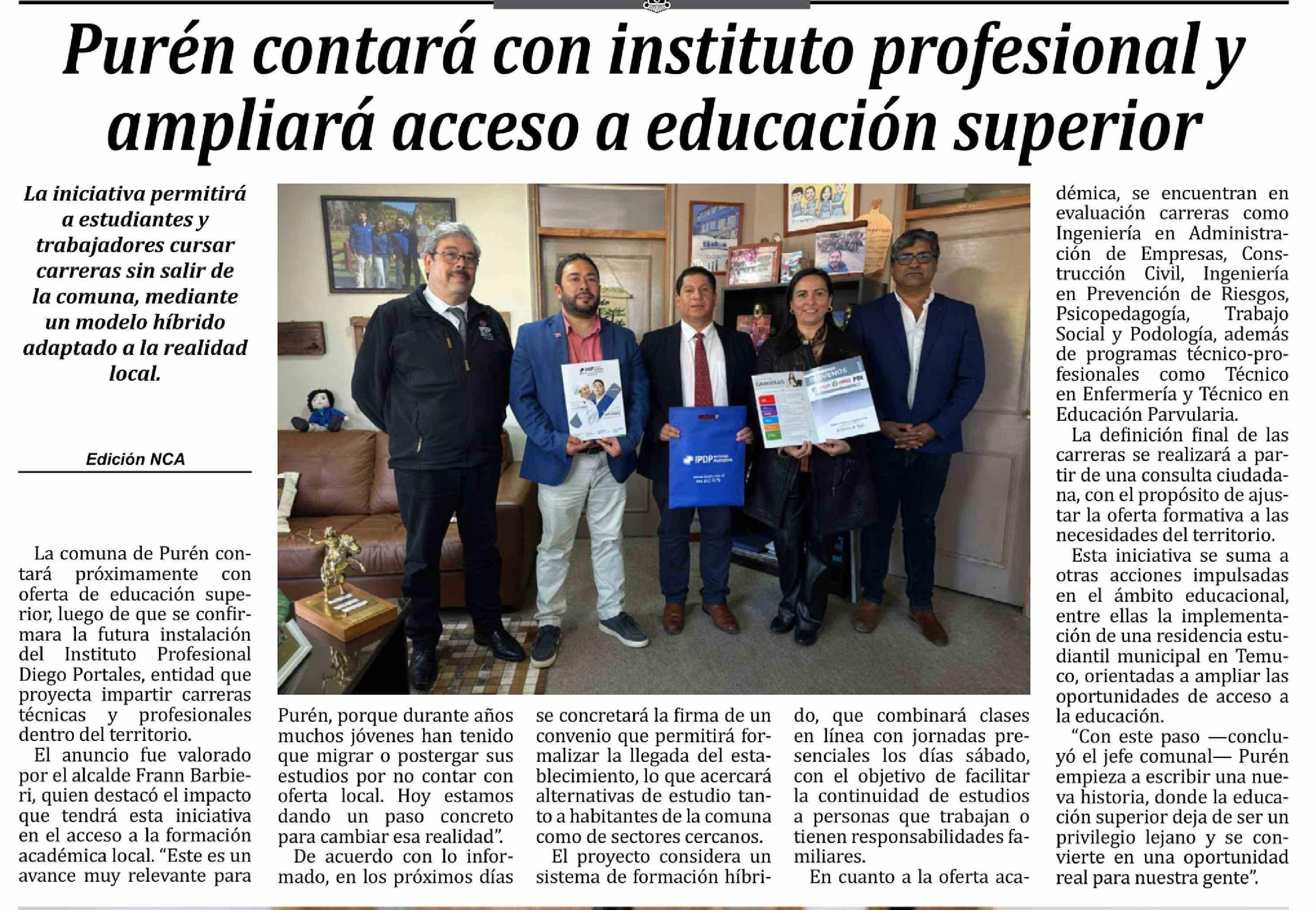 | Título: | Purén contará con instituto profesional y ampliará acceso a educación superior |