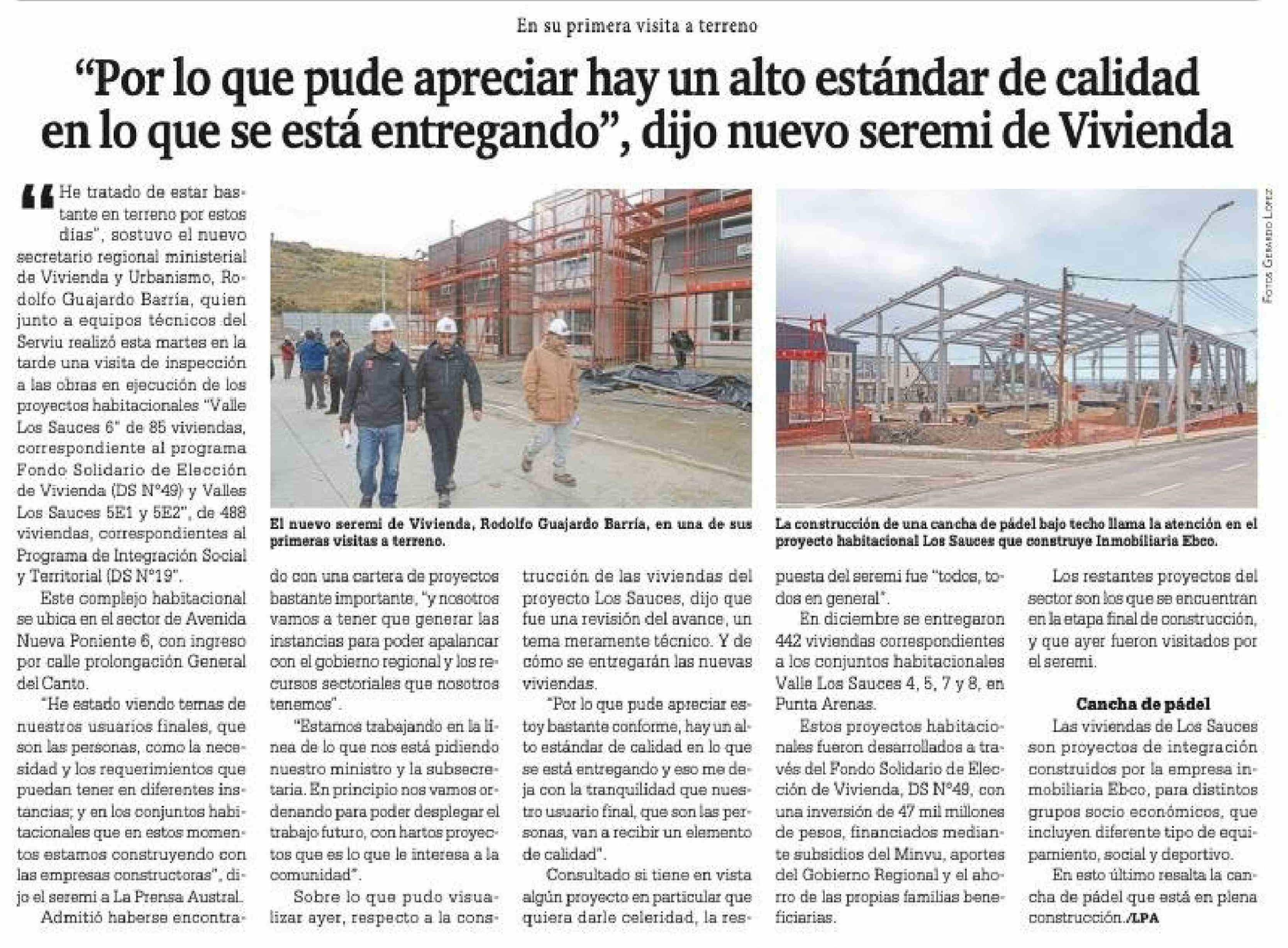 "Por lo que pude apreciar hay un alto estándar de calidad en lo que se está entregando", dijo nuevo seremi de Vivienda 08-04-2026 La Prensa Austral |