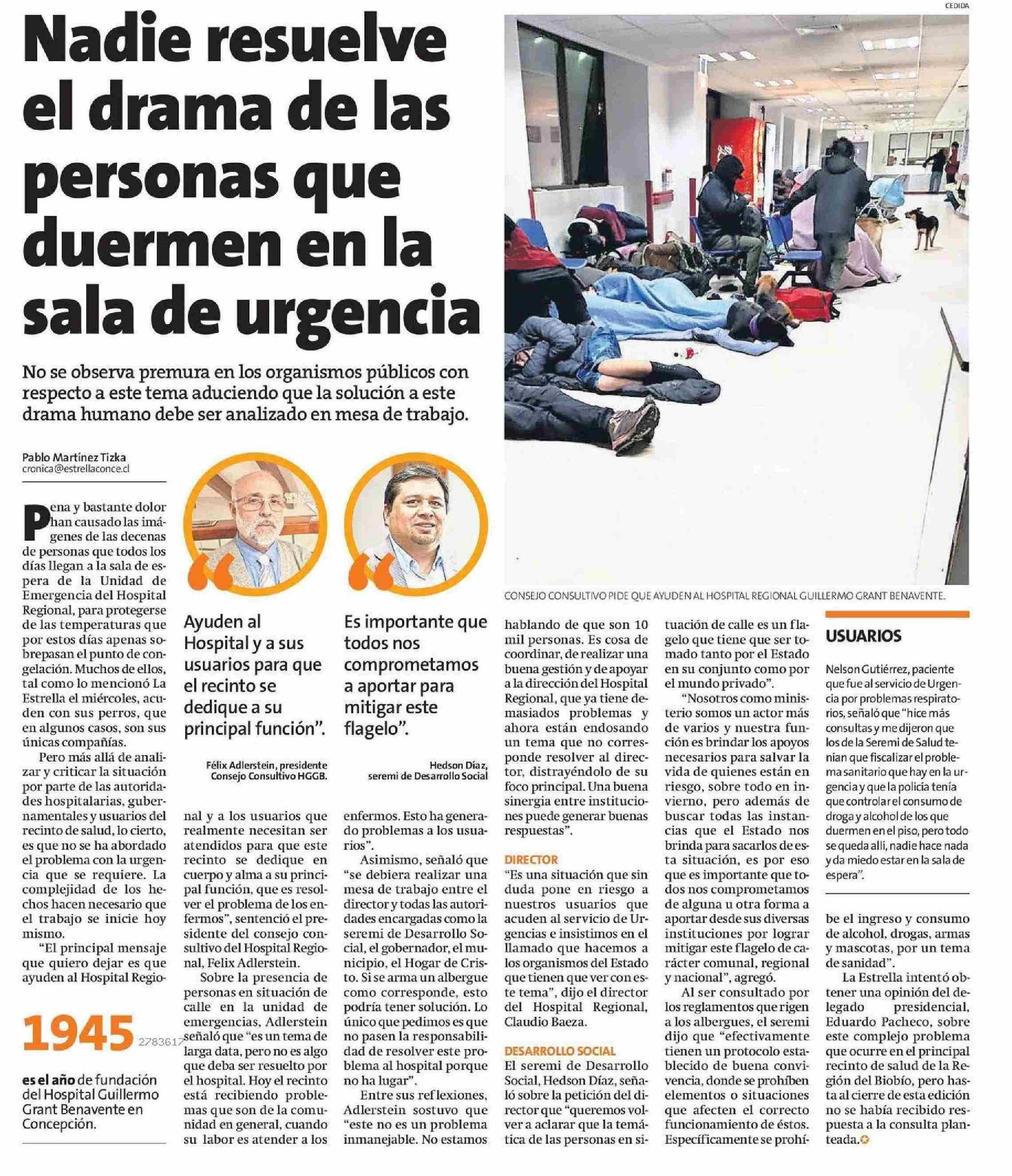 Nadie resuelve el drama de las personas que duermen en la sala de urgencia 19-06-2025 La Estrella de Concepción |