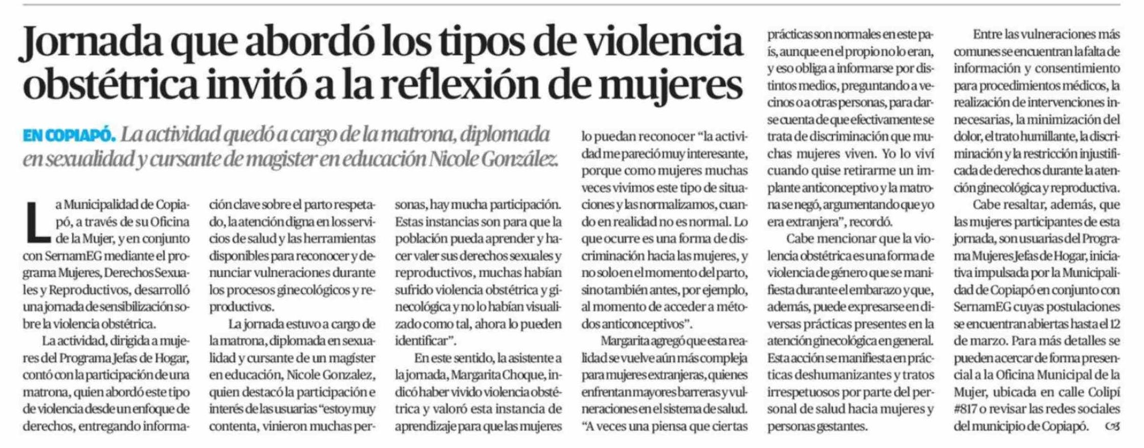 Título: Jornada que abordó los tipos de violencia obstétrica invitó a la reflexión de mujeres