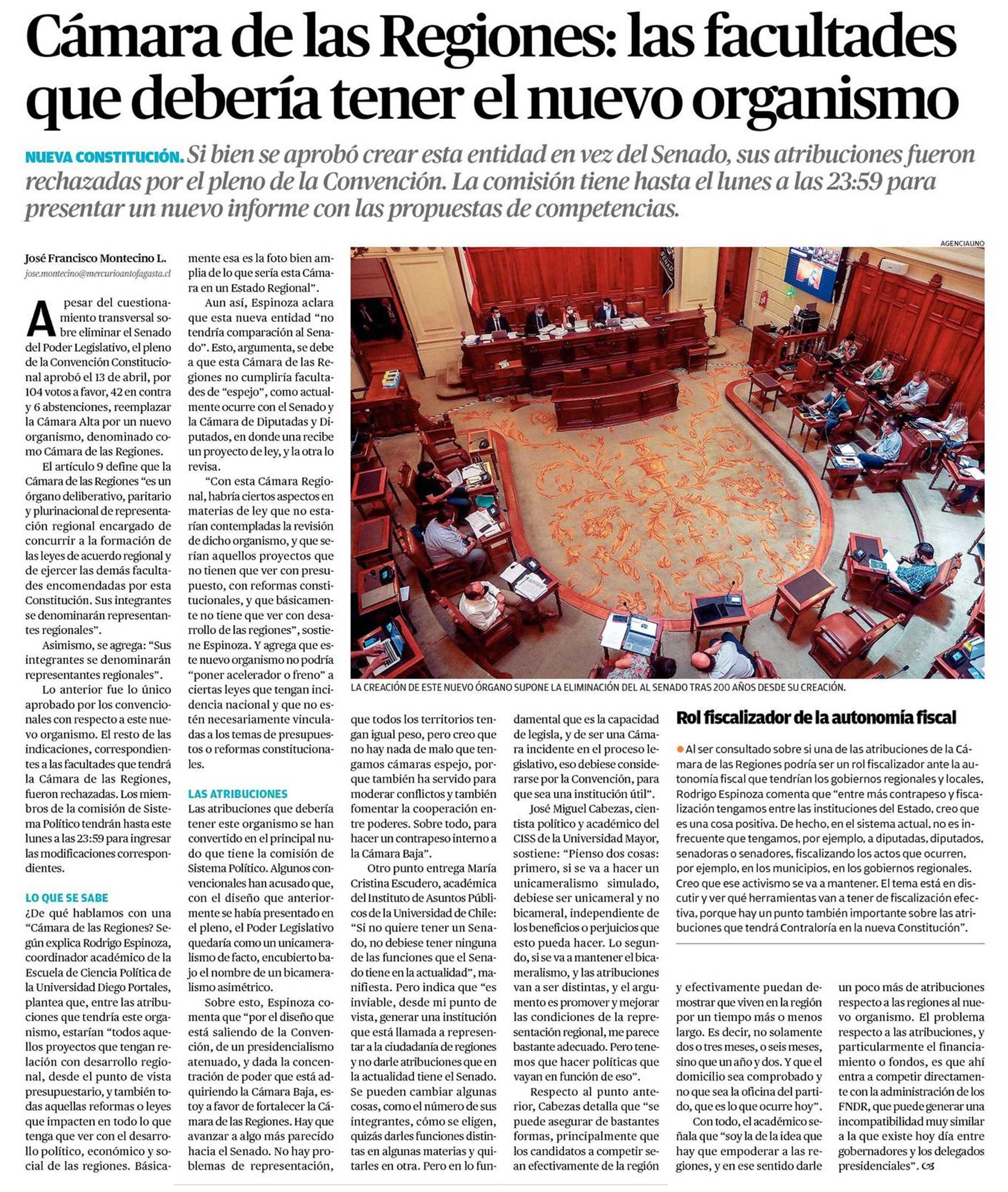 Cámara de las Regiones: las facultades que debería tener el nuevo organismo 24-04-2022 El Mercurio de Antofagasta |