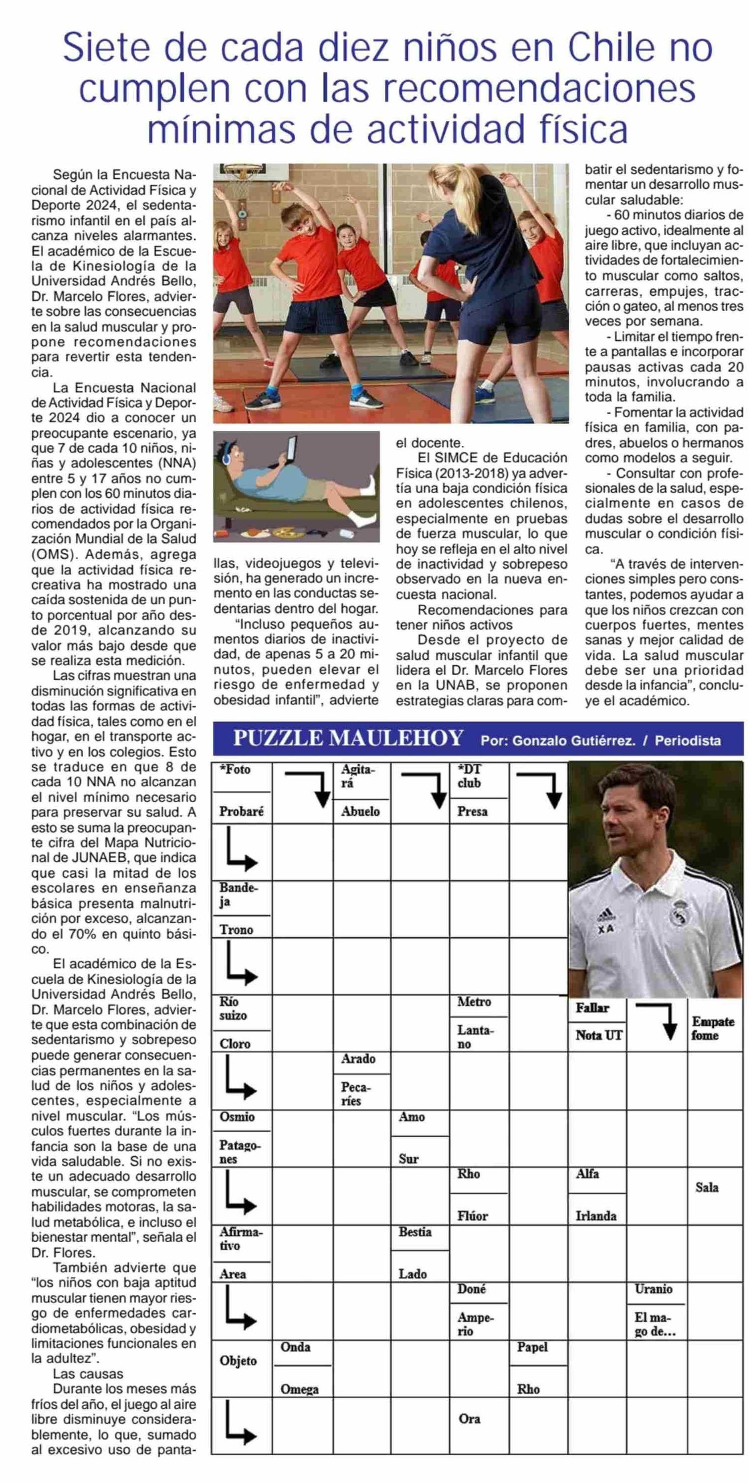 Siete de cada diez niños en Chile no cumplen con las recomendaciones mínimas de actividad física 11-06-2025 Maule Hoy |