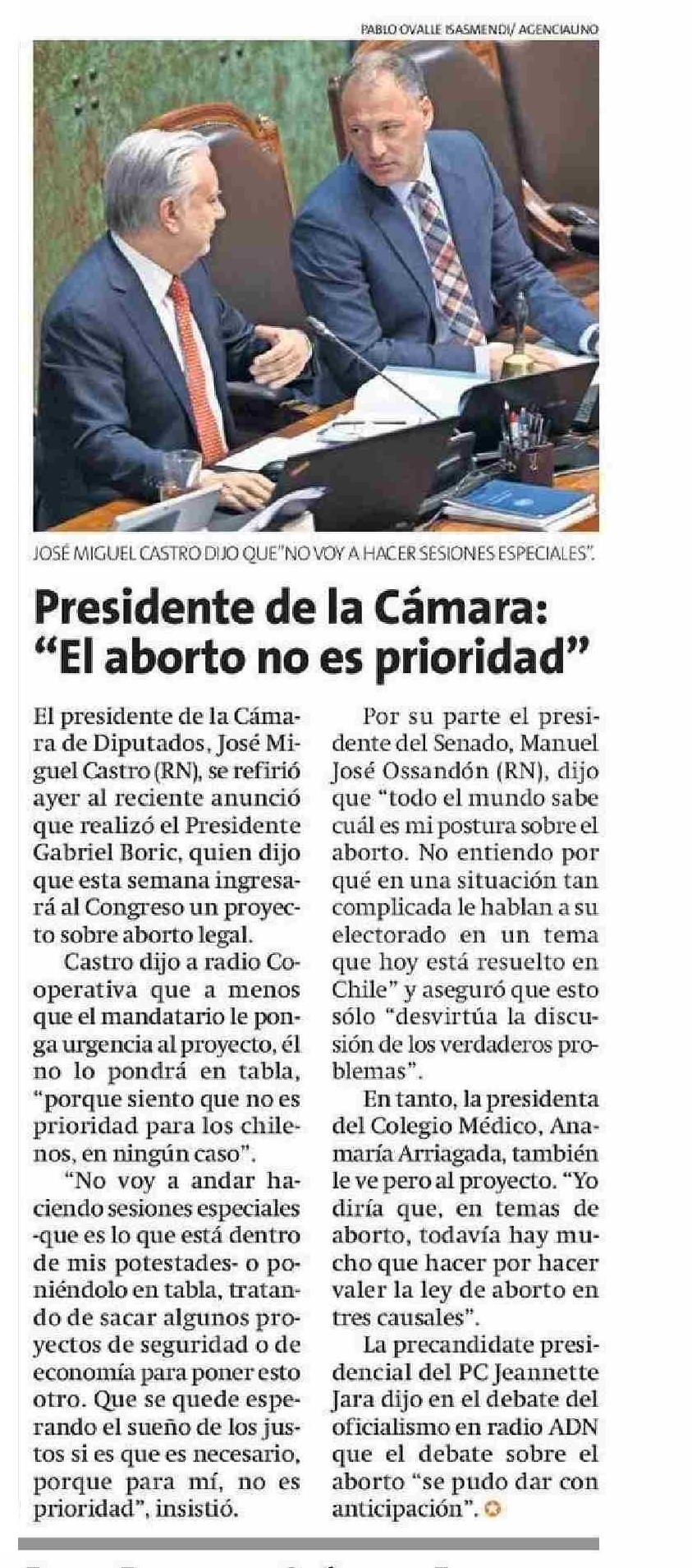 Título: Presidente de la Cámara: “El aborto no es prioridad”