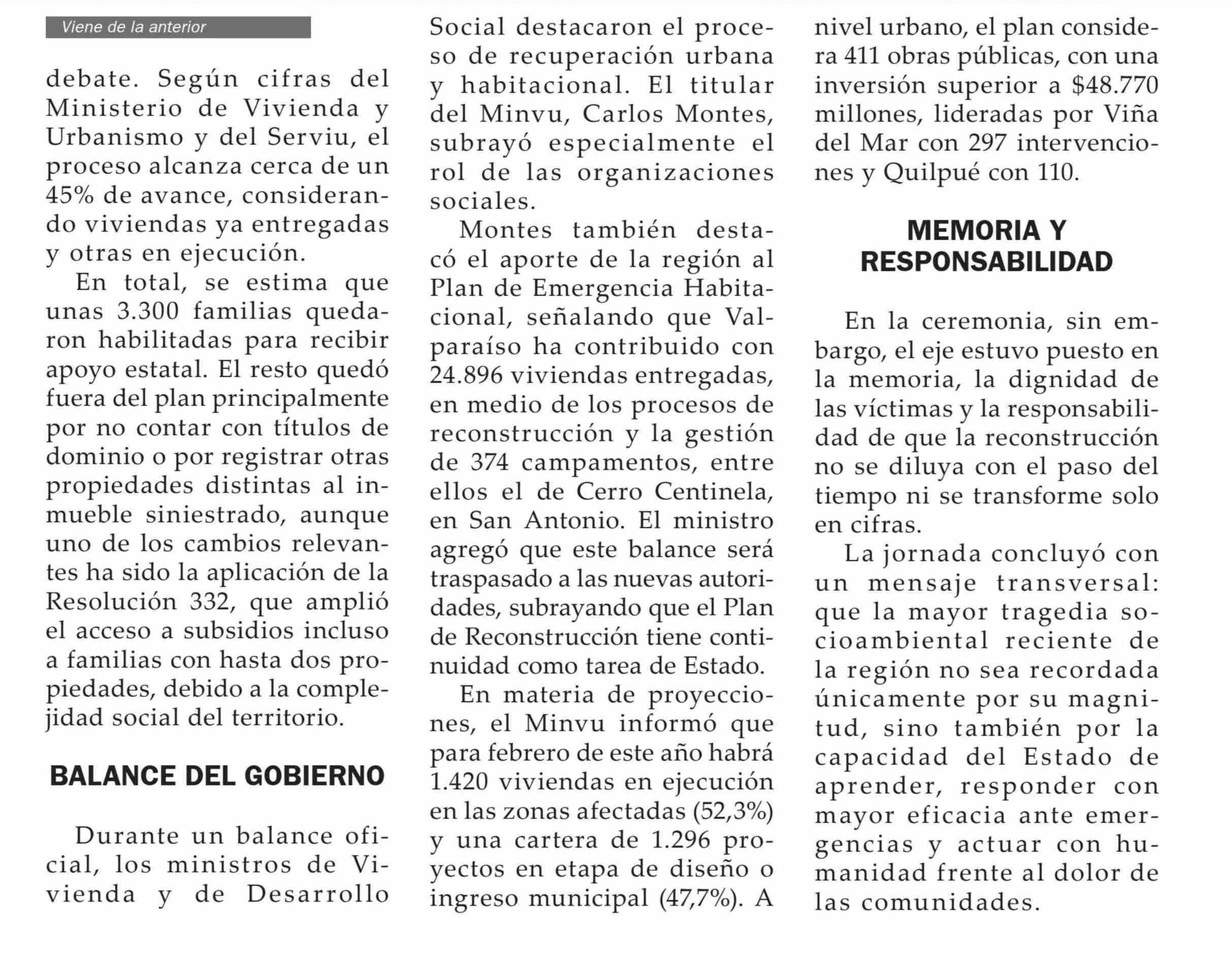 _A dos años del 2F: conmemoración pone foco en las familias que aún esperan reconstrucción 02-02-2026 El Observador Vespertino |
