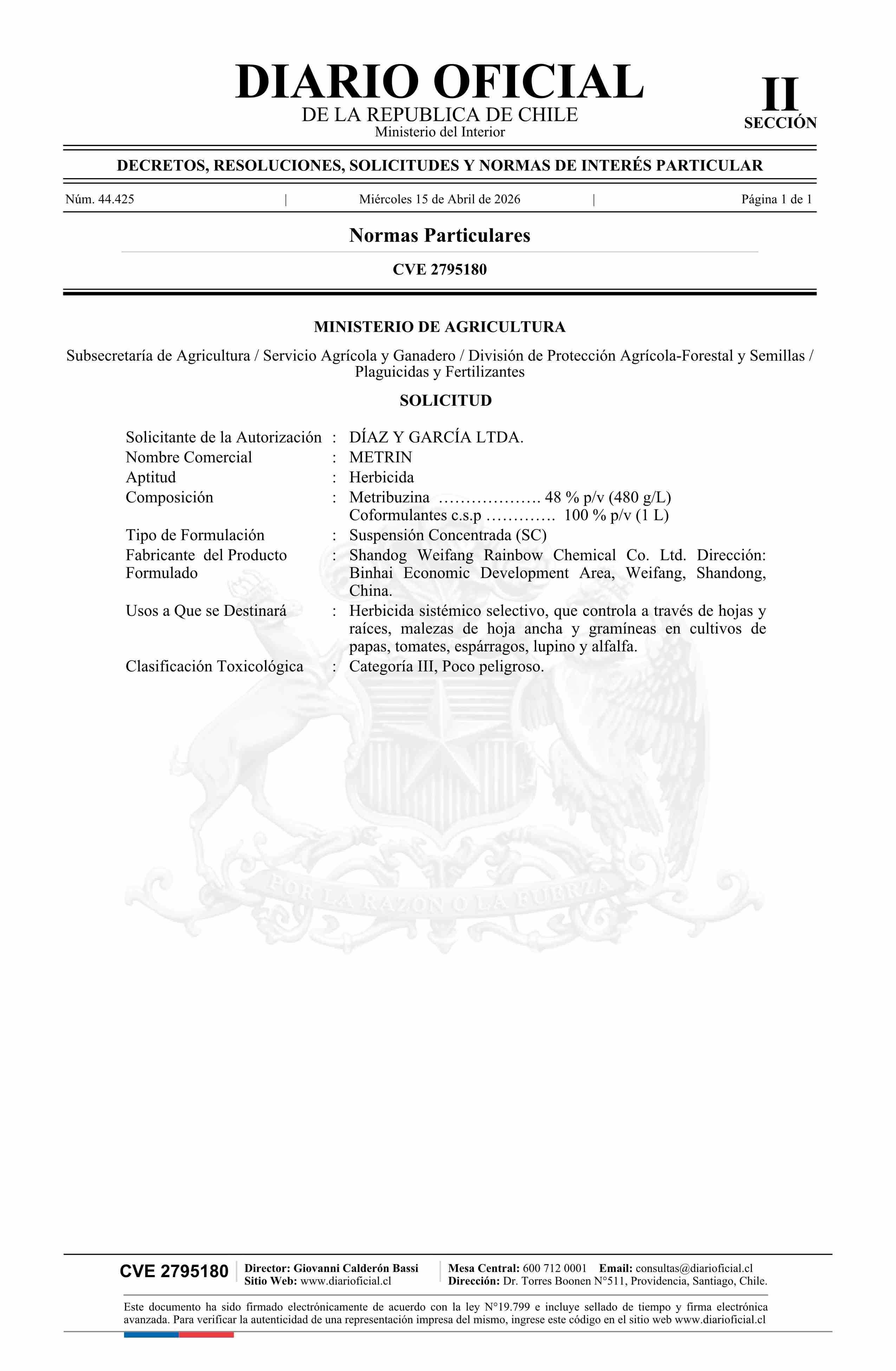 Fuente: Diario Oficial Edición Electrónica (Diario Oficial de Chile - 2 Normas Particulares) Página(s): 504