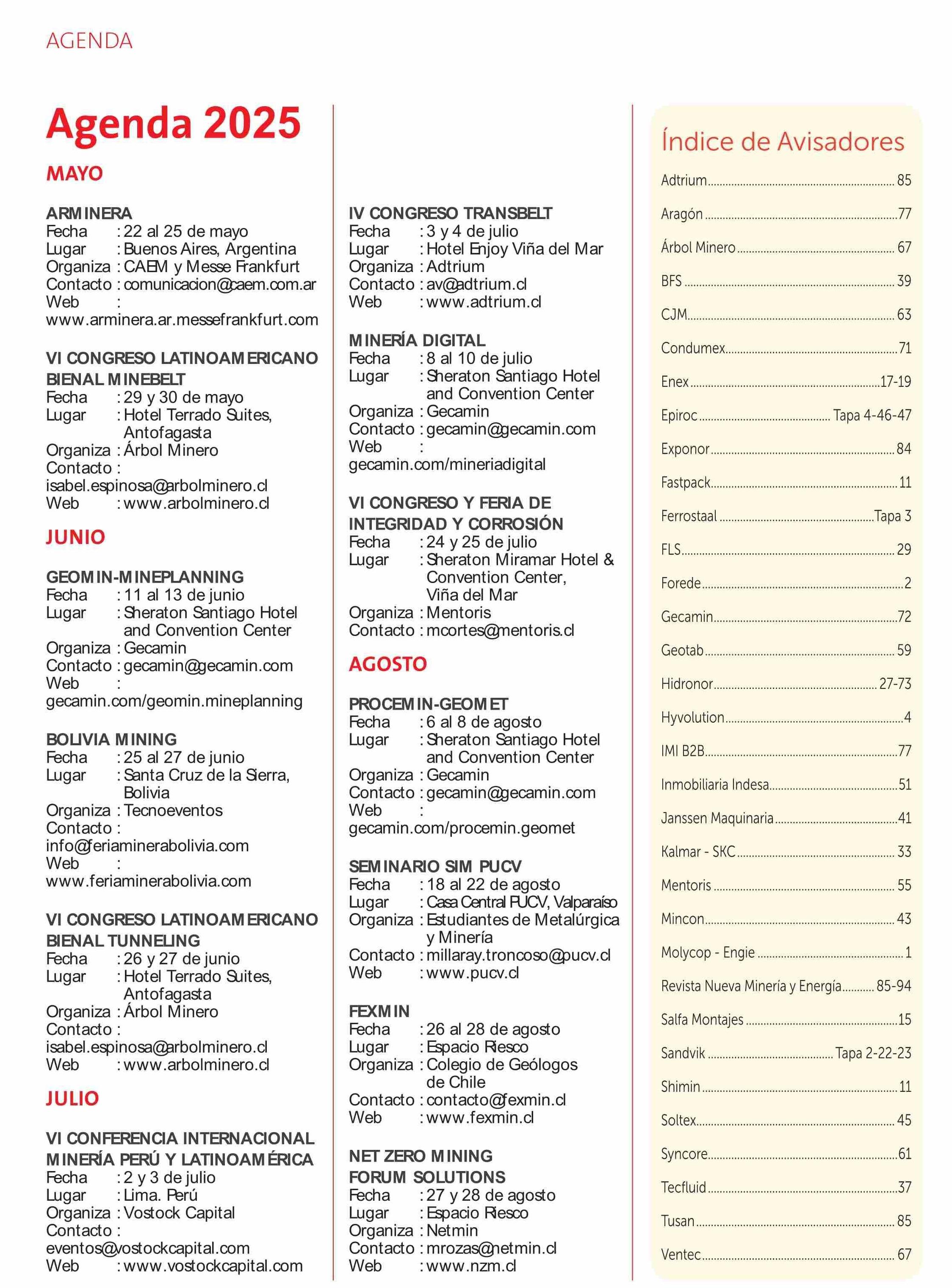 Índice de Avisadores 19-05-2025 Revista Nueva Minería & Energía |