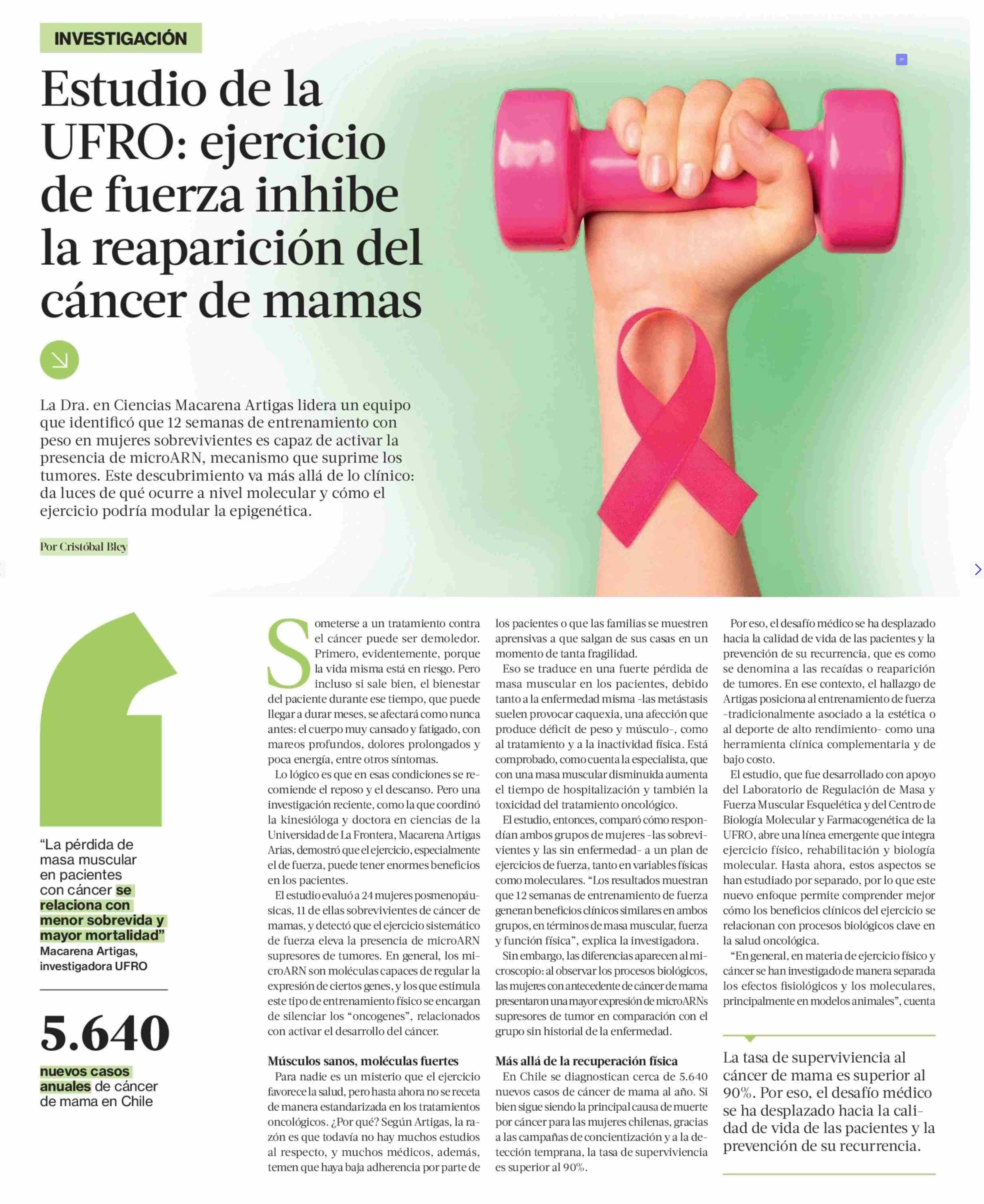 Estudio de la UFRO: ejercicio de fuerza inhibe la reaparición del cáncer de mamas 26-04-2026 La Tercera |