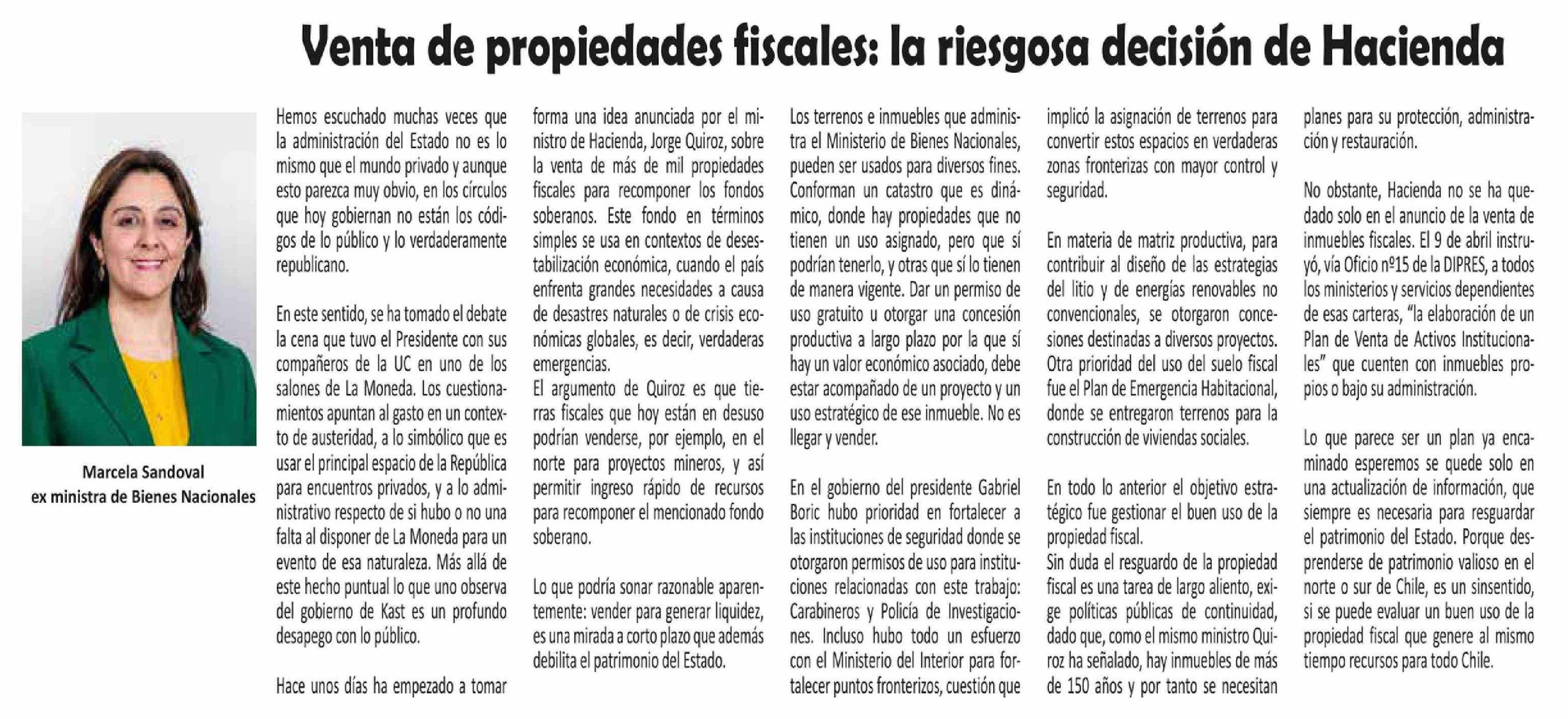 | Título: | Columnas de Opinión: Venta de propiedades fiscales: la riesgosa decisión de Hacienda |