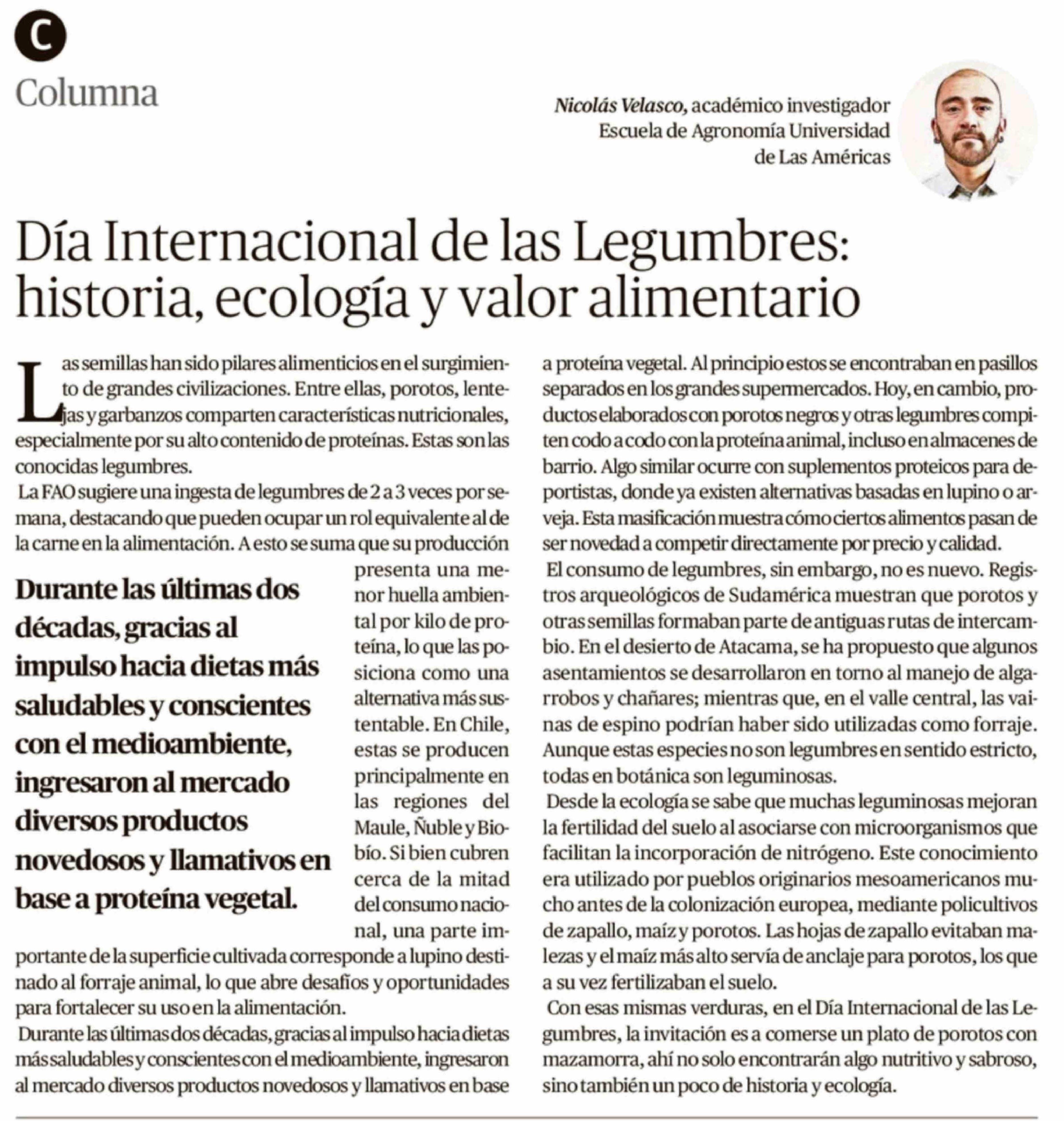 | Título: | Columnas de Opinión: Día Internacional de las Legumbres: historia, ecología y valor alimentario |