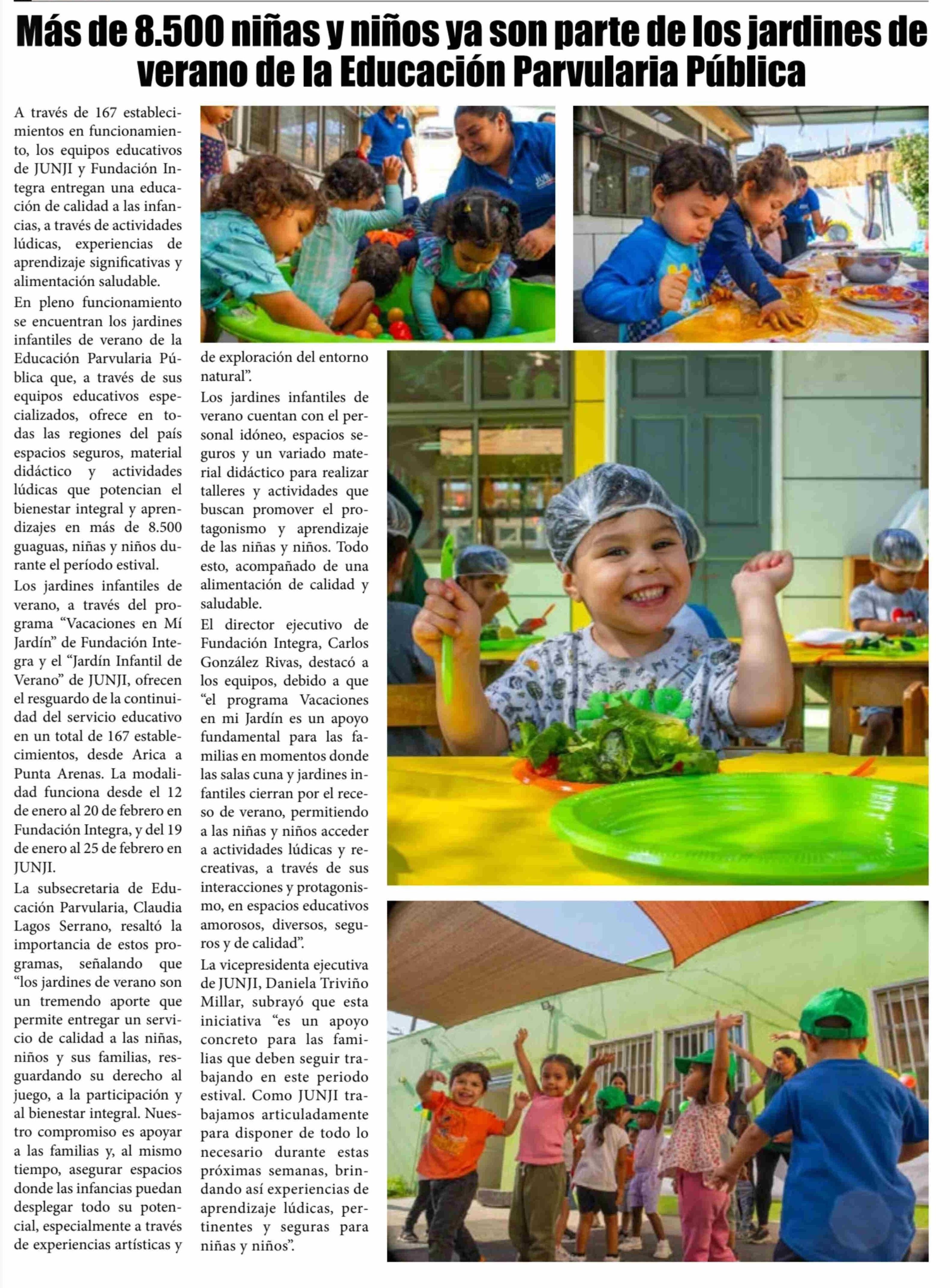 | Título: | Más de 8.500 niñas y niños ya son parte de los jardines de verano de la Educación Parvularia Pública |