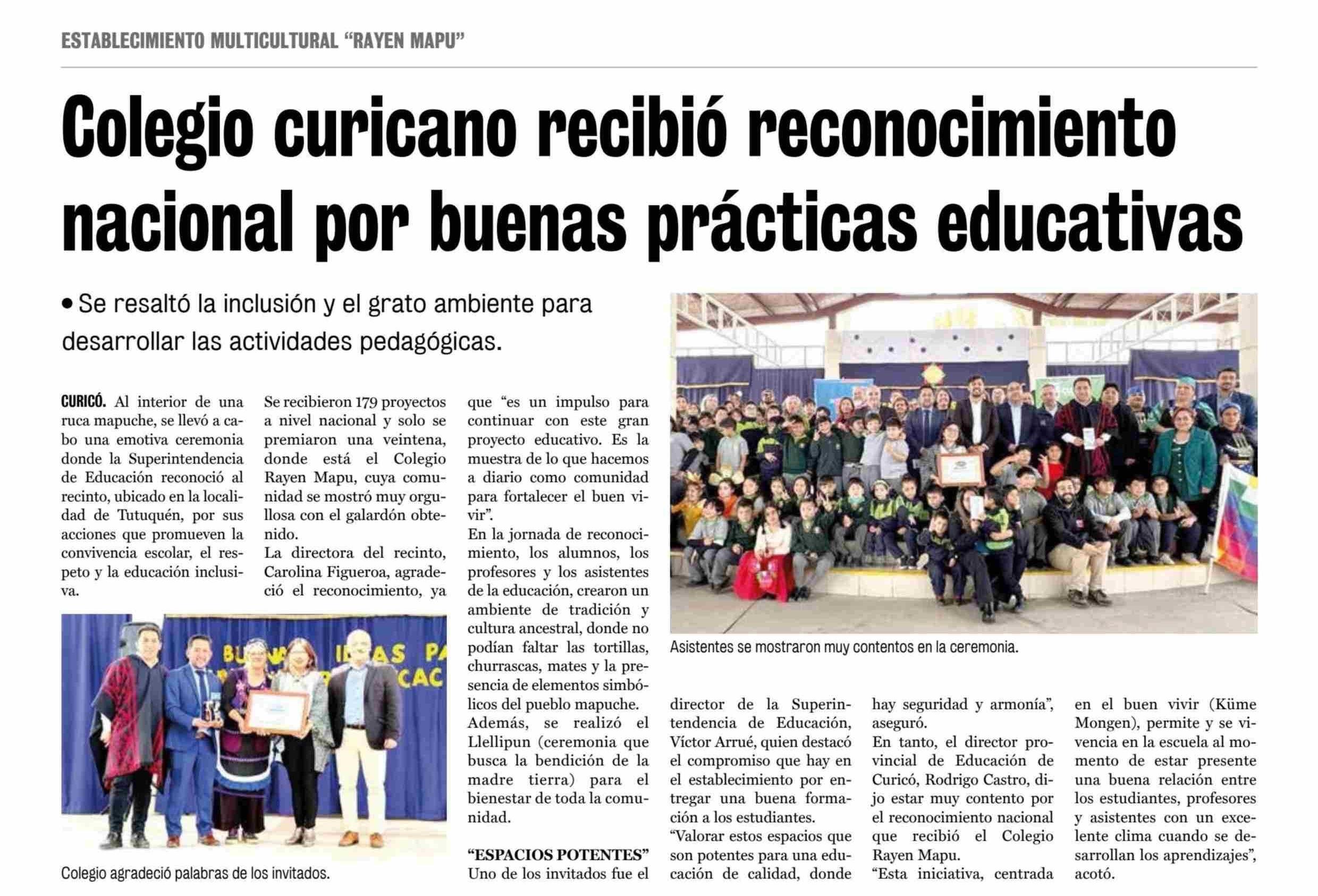 Colegio curicano recibió reconocimiento nacional por buenas prácticas educativas 24-04-2025 La Prensa de Curicó |