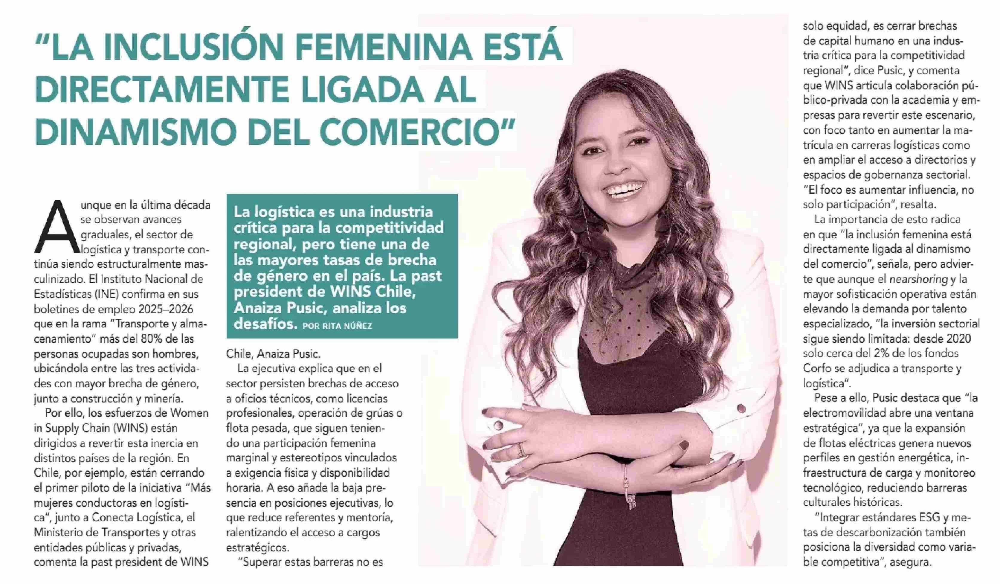 Título: “LA INCLUSIÓN FEMENINA ESTÁ DIRECTAMENTE LIGADA AL DINAMISMO DEL COMERCIO”