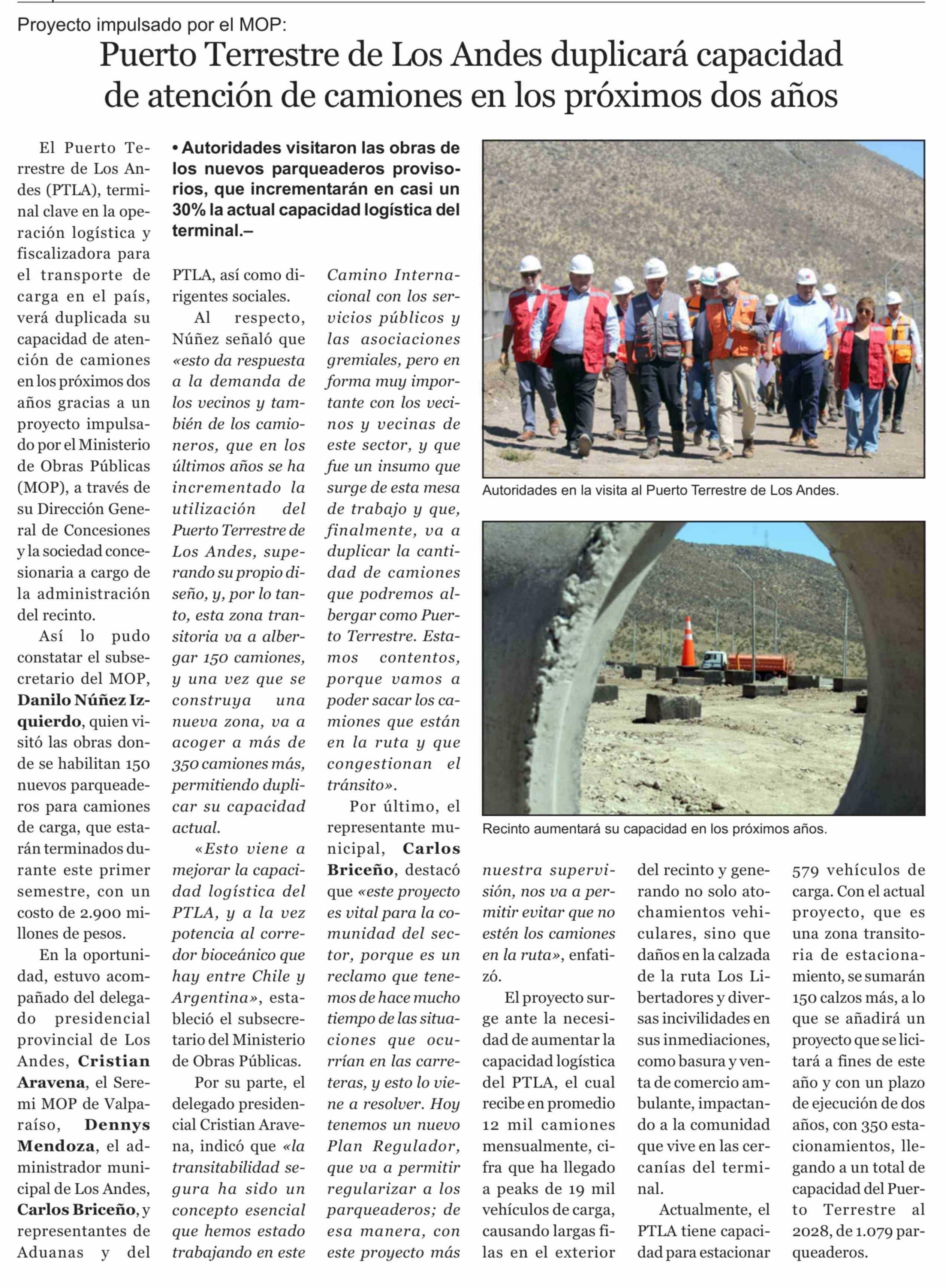 Título: Puerto Terrestre de Los Andes duplicará capacidad de atención de camiones en los próximos dos años