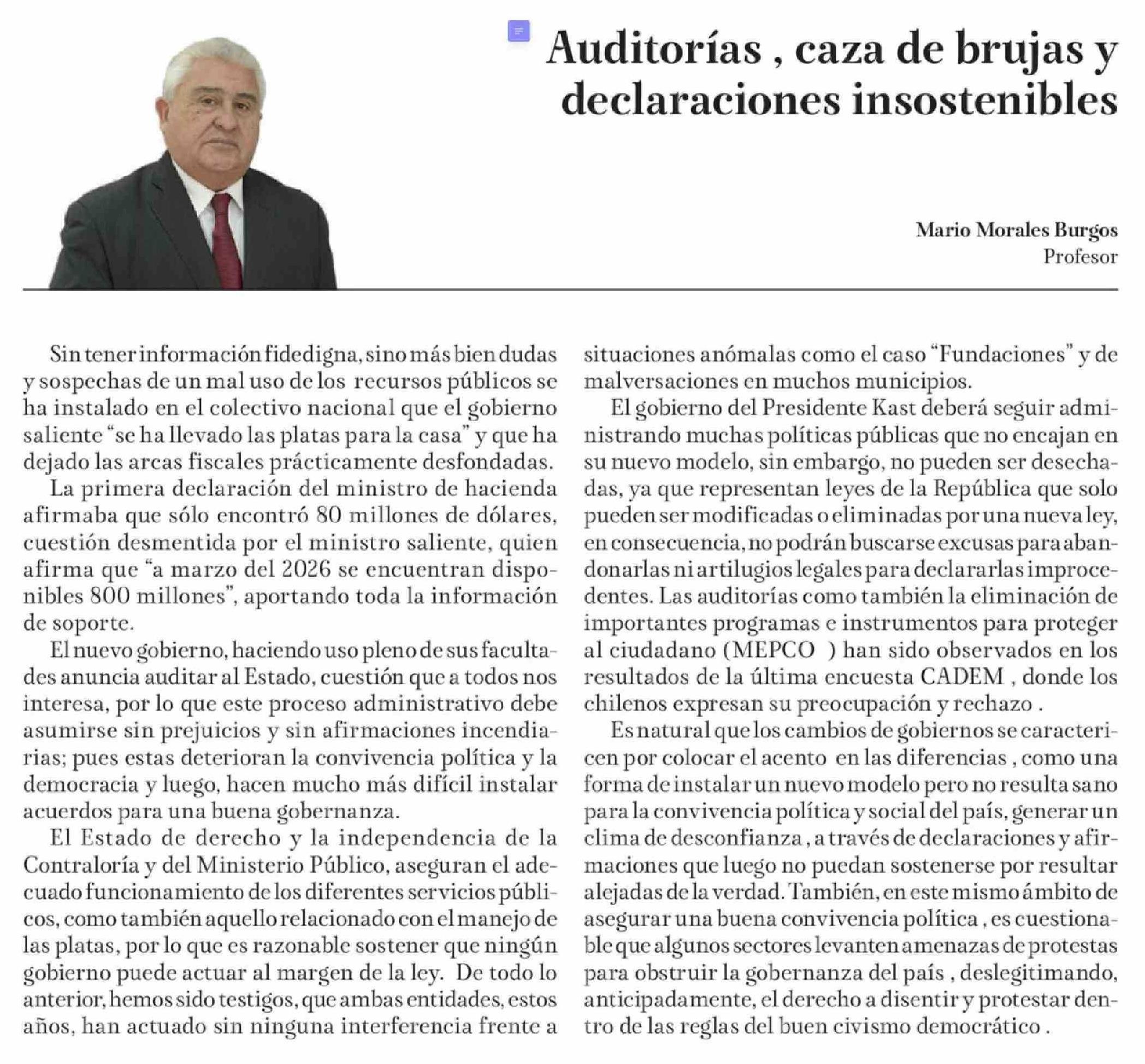 | Título: | Columnas de Opinión: Auditorías , caza de brujas y declaraciones insostenibles |
