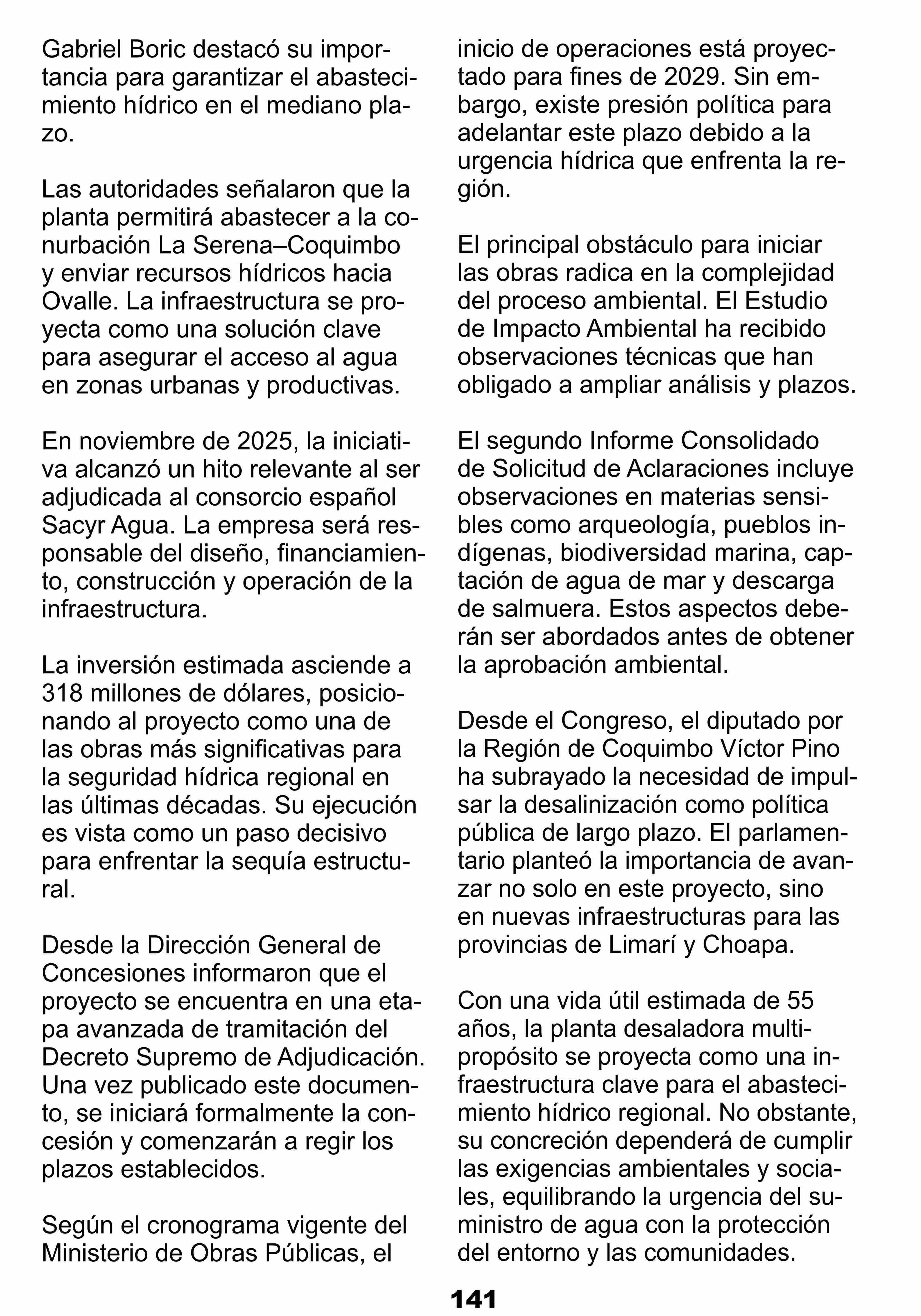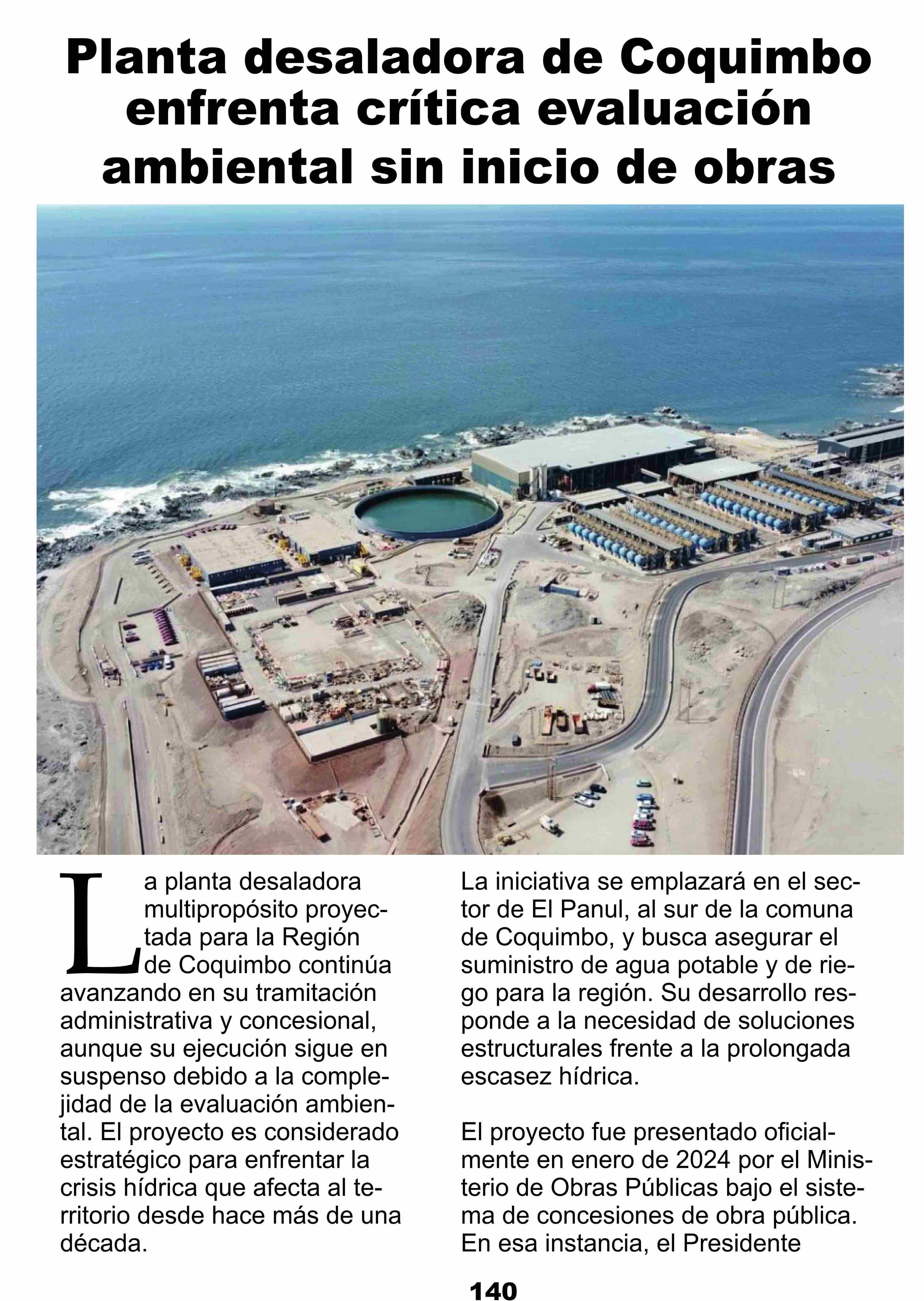 | Título: | Planta desaladora de Coquimbo enfrenta crítica evaluación ambiental sin inicio de obras |