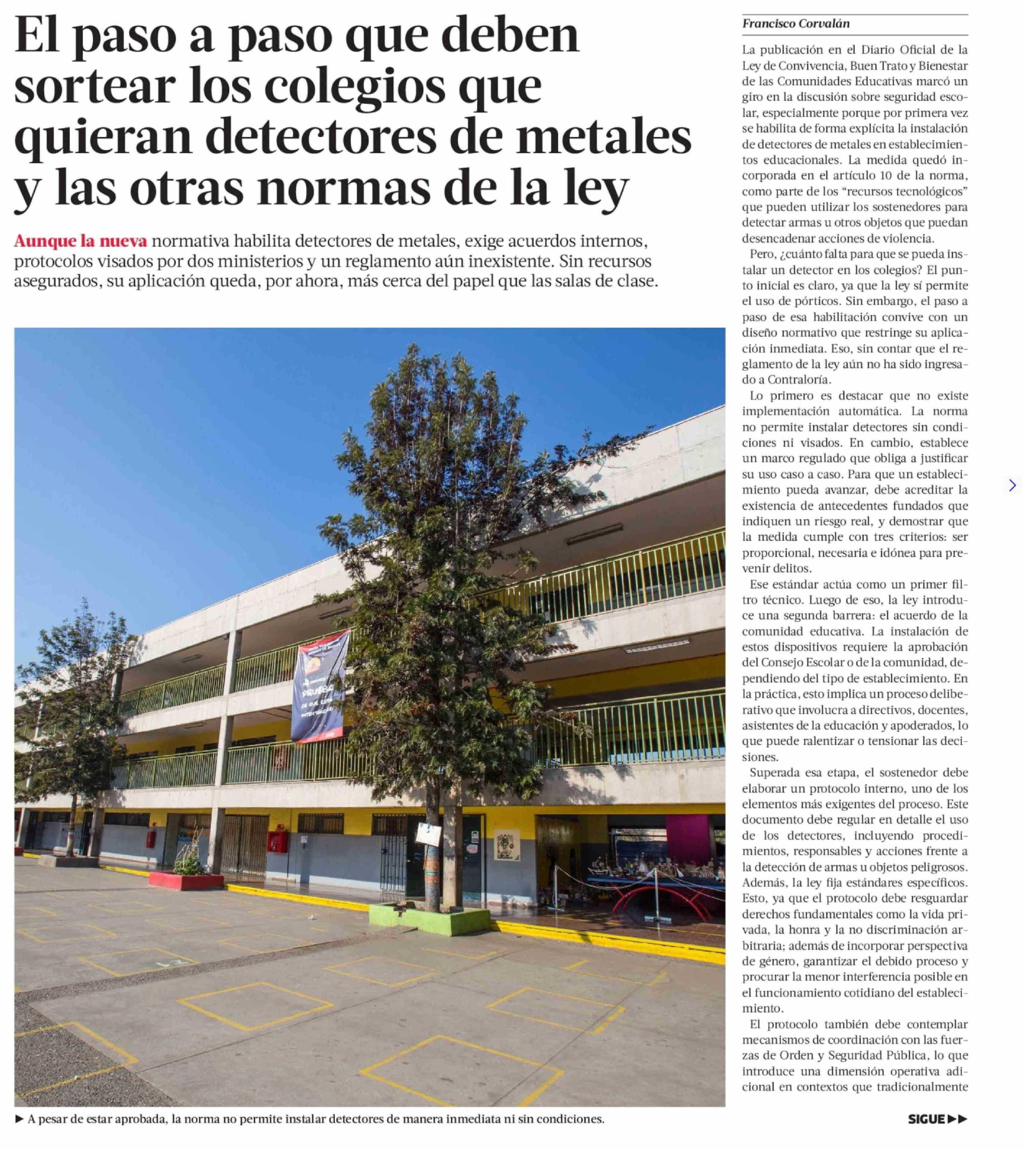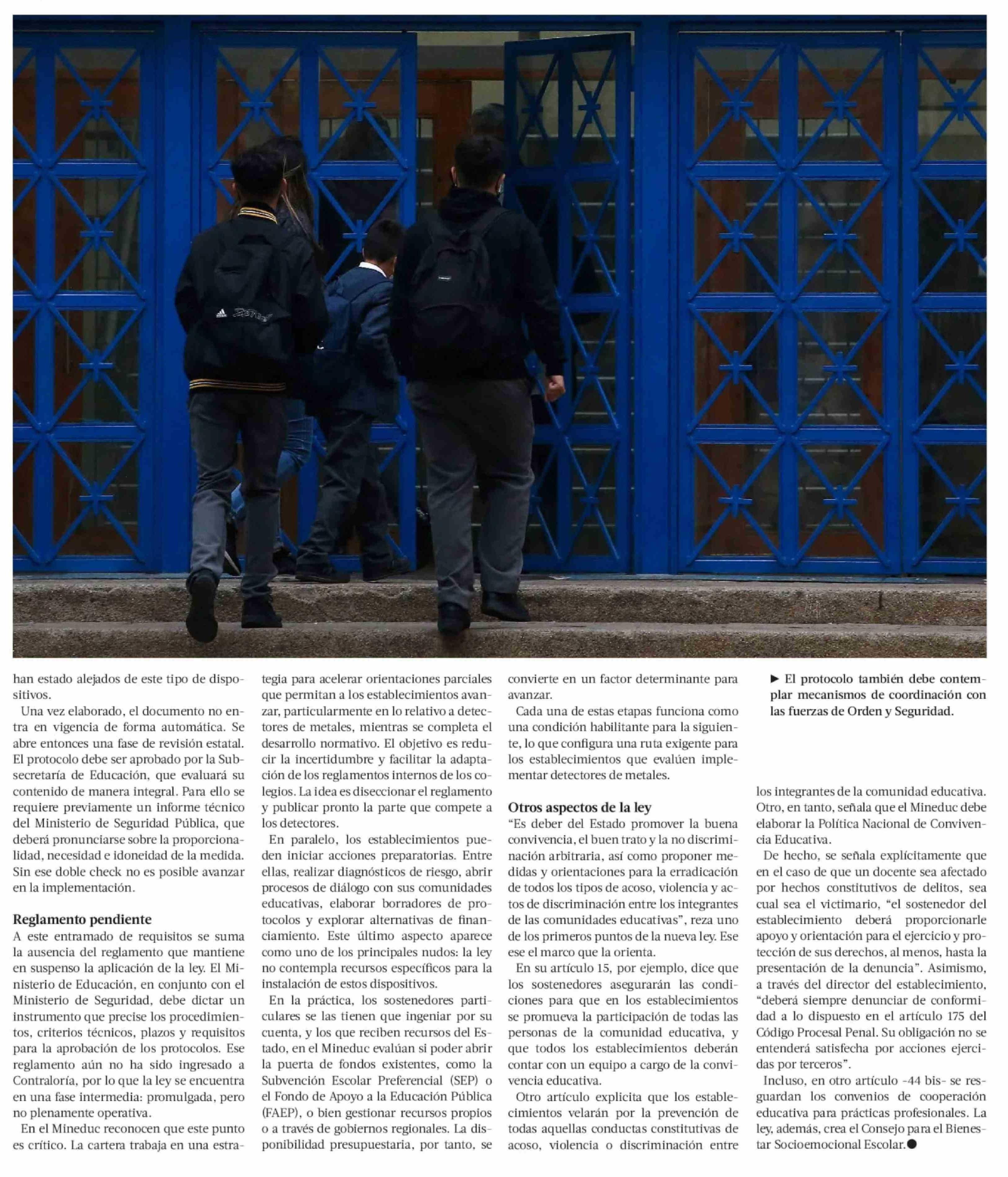 El paso a paso que deben sortear los colegios que quieran detectores de metales y las otras normas de la ley 03-04-2026 La Tercera |