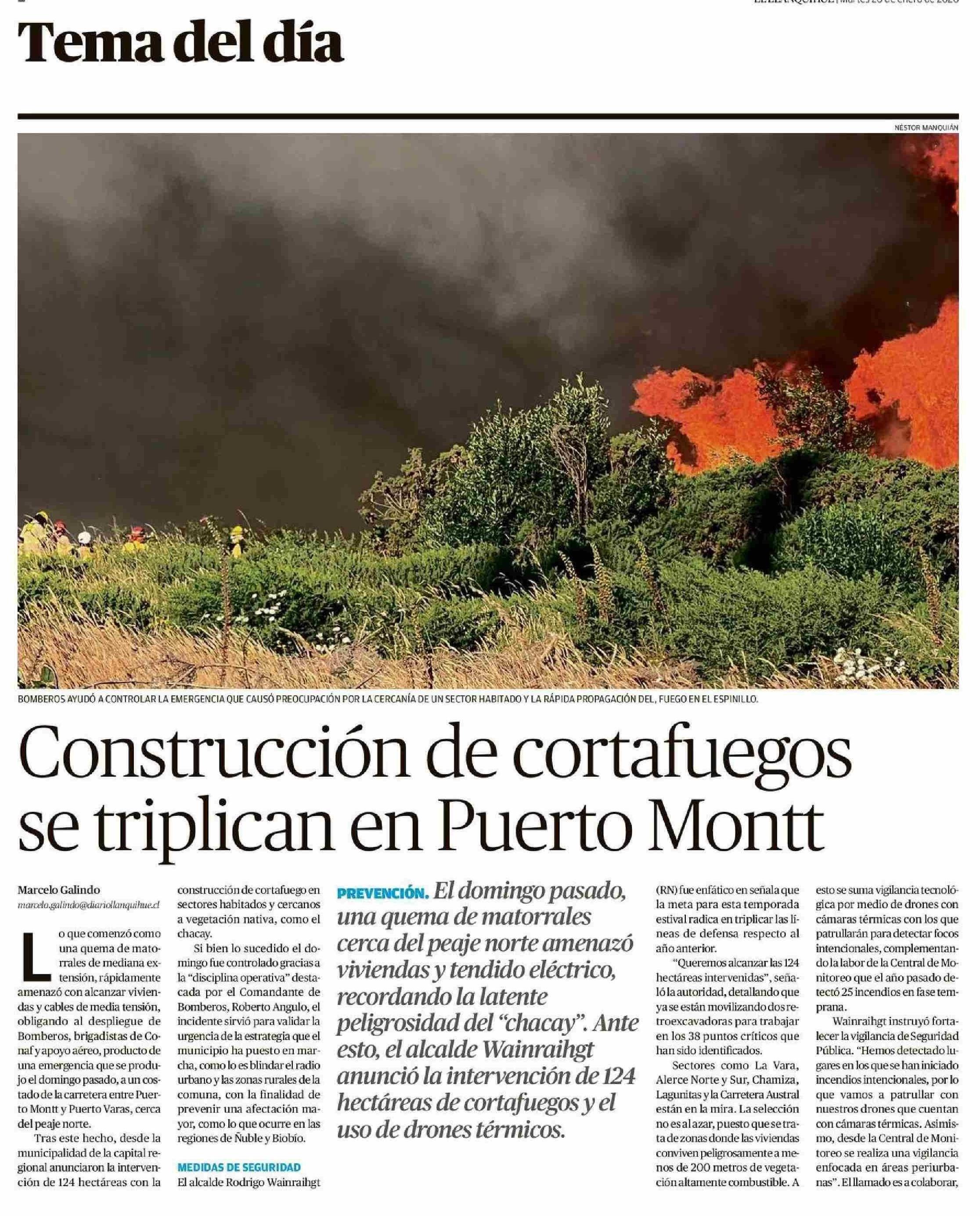 Título: Construcción de cortafuegos se triplican en Puerto Montt