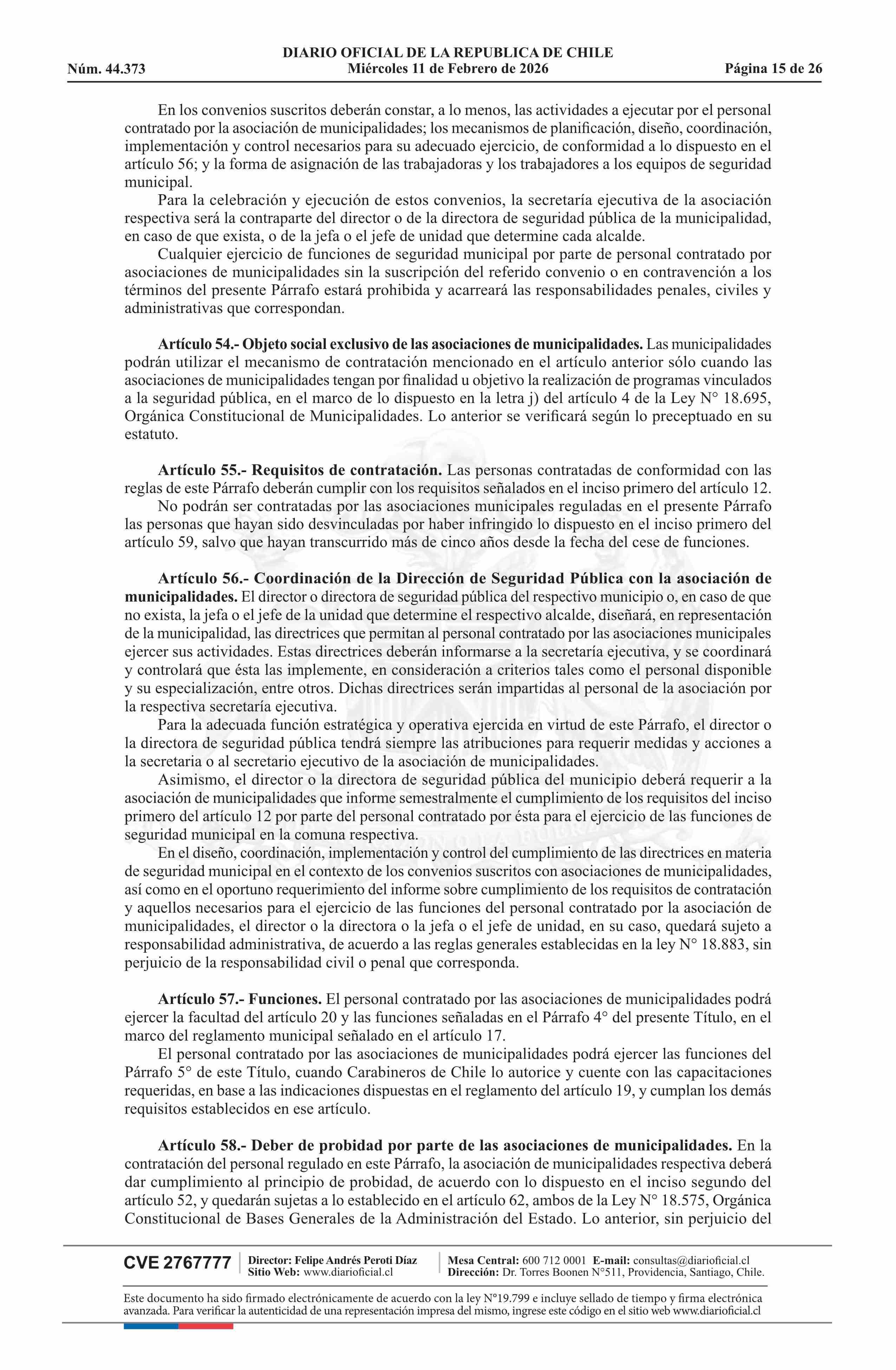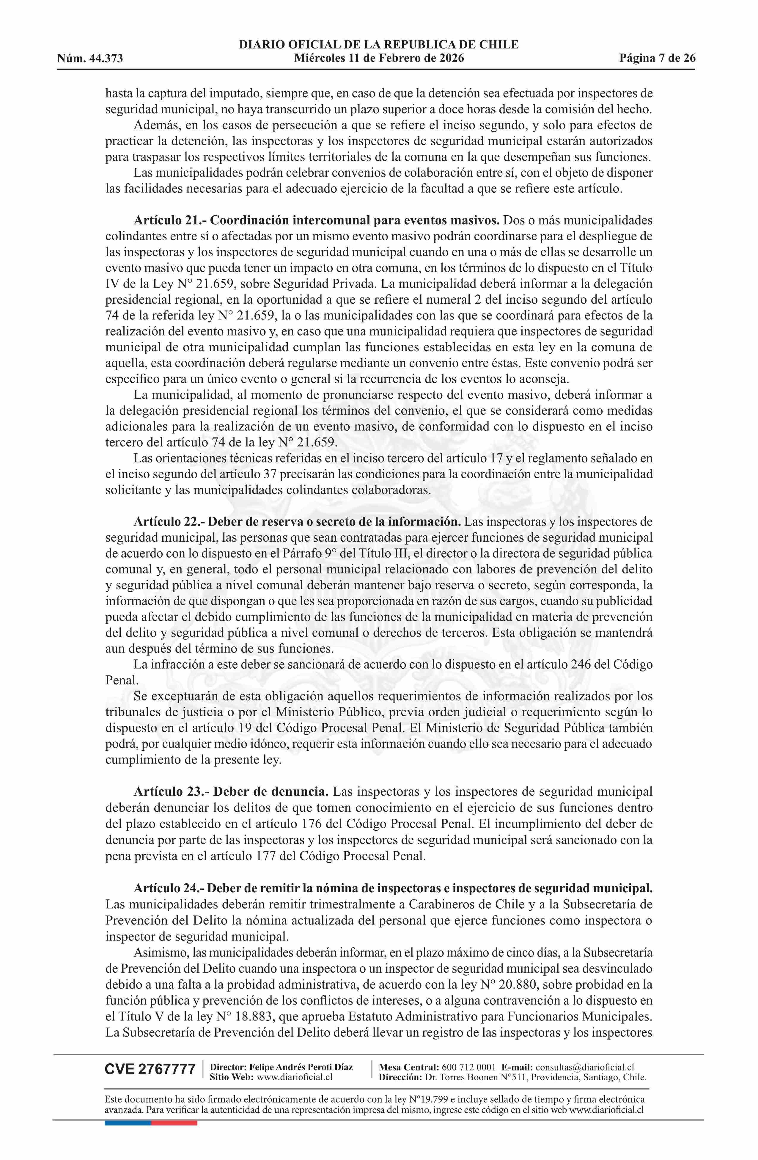 | Título: | Ley número 21.802.- Modifica la Ley N° 18.695, Orgánica Constitucional de Municipalidades, y otros cuerpos legales, con el objeto de fortalecer la institucionalidad municipal en materia de seguridad pública y prevención del delito |