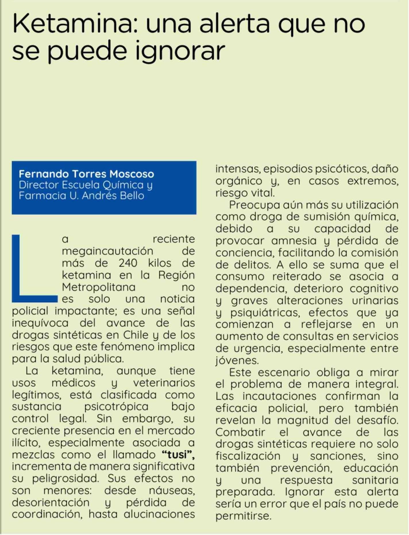 Título: Columnas de Opinión: Ketamina: una alerta que no se puede ignorar