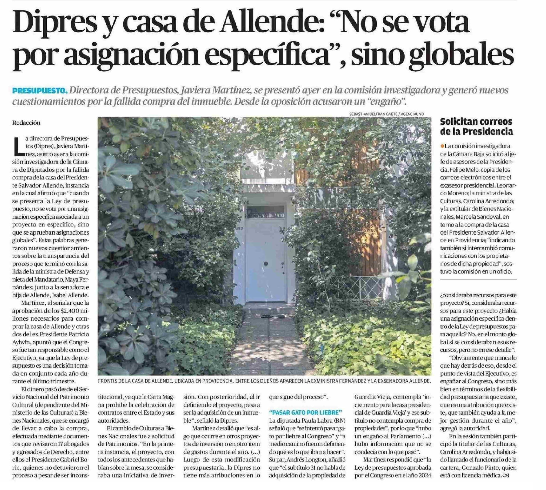 Título: Dipres y casa de Allende: “No se vota por asignación específica”, sino globales