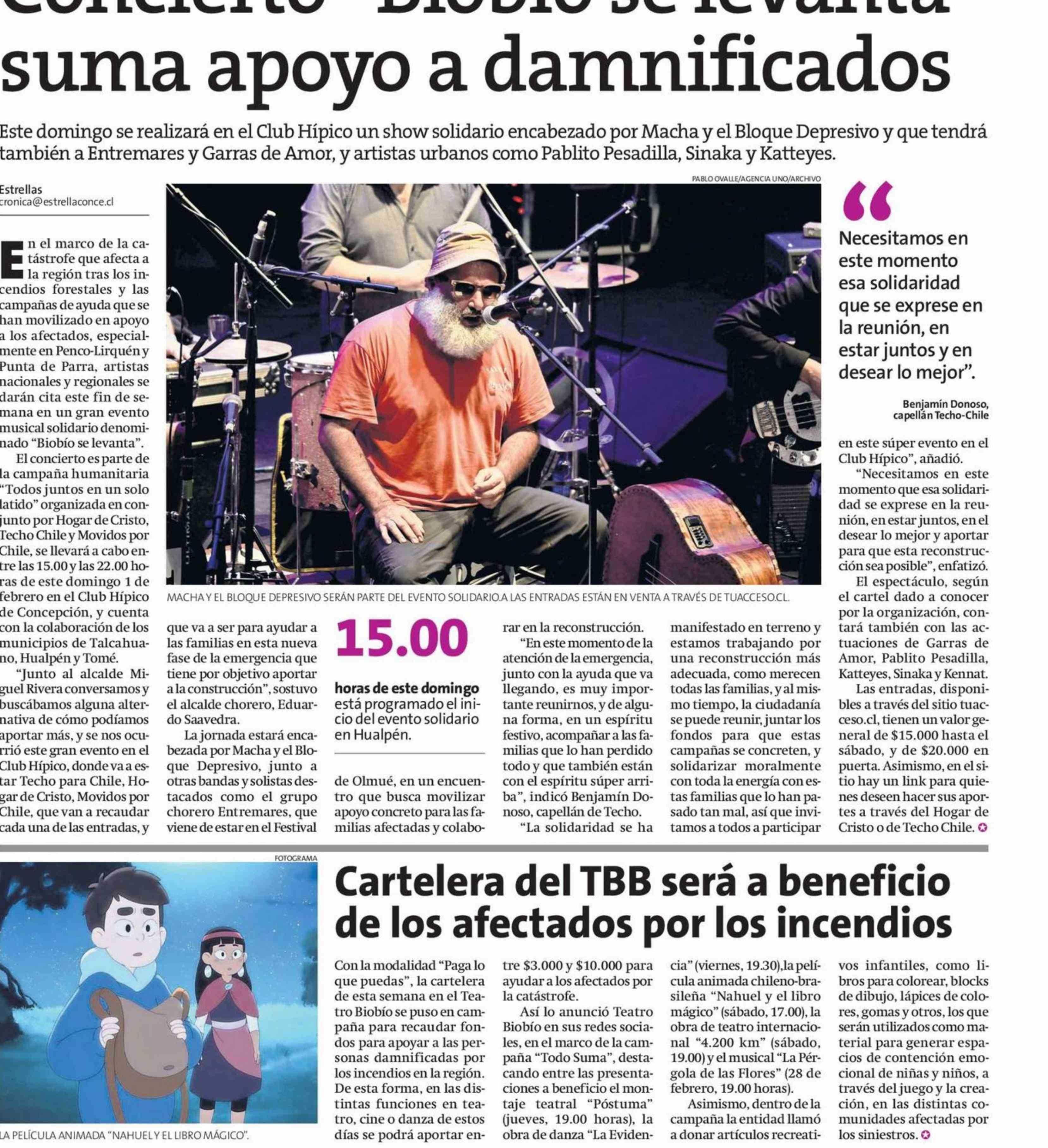 Concierto "Biobio se levanta" suma apoyo a damnificados 29-01-2026 La Estrella de Concepción |
