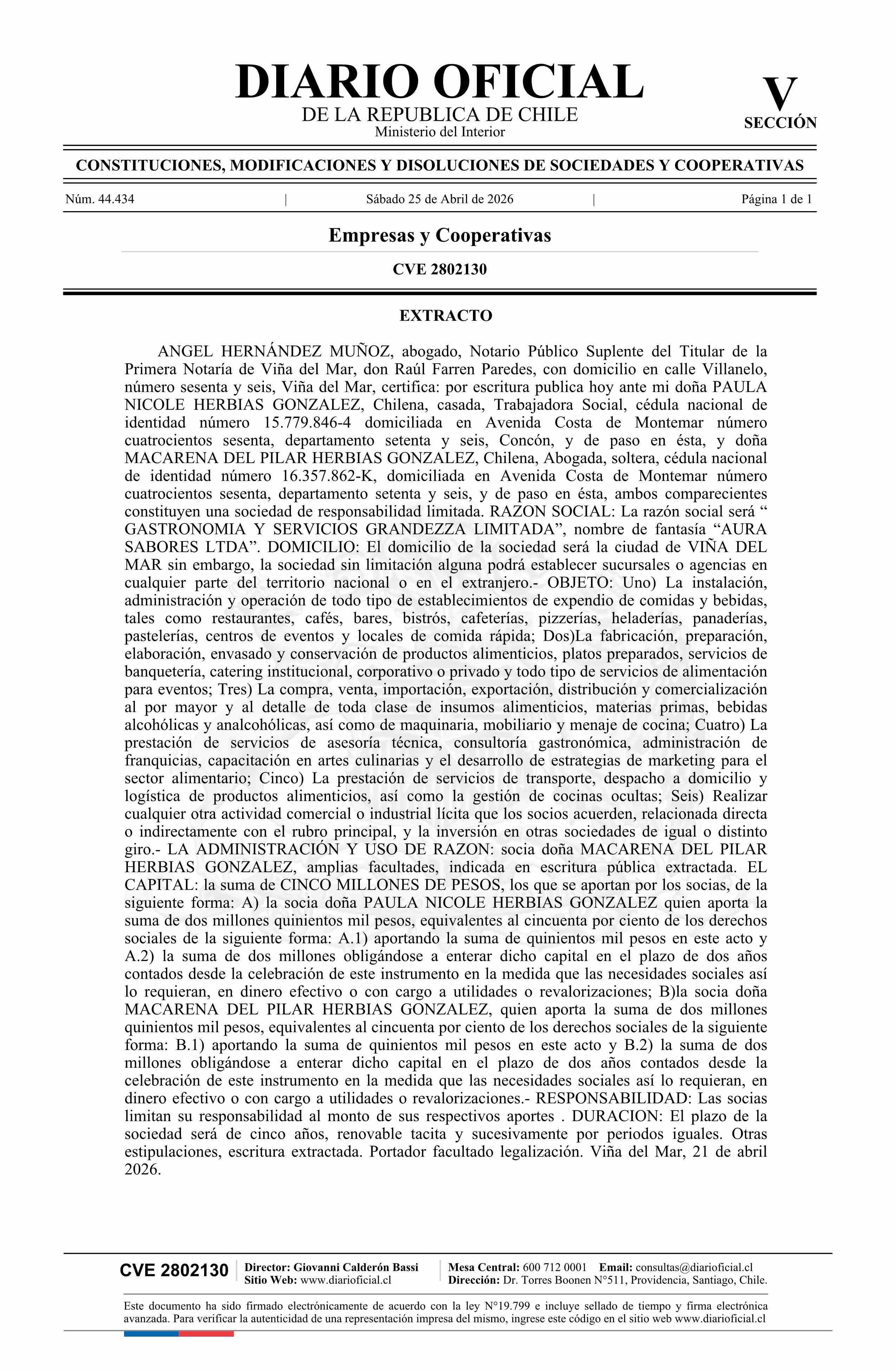 Título: GASTRONOMIA Y SERVICIOS GRANDEZZA LIMITADA
