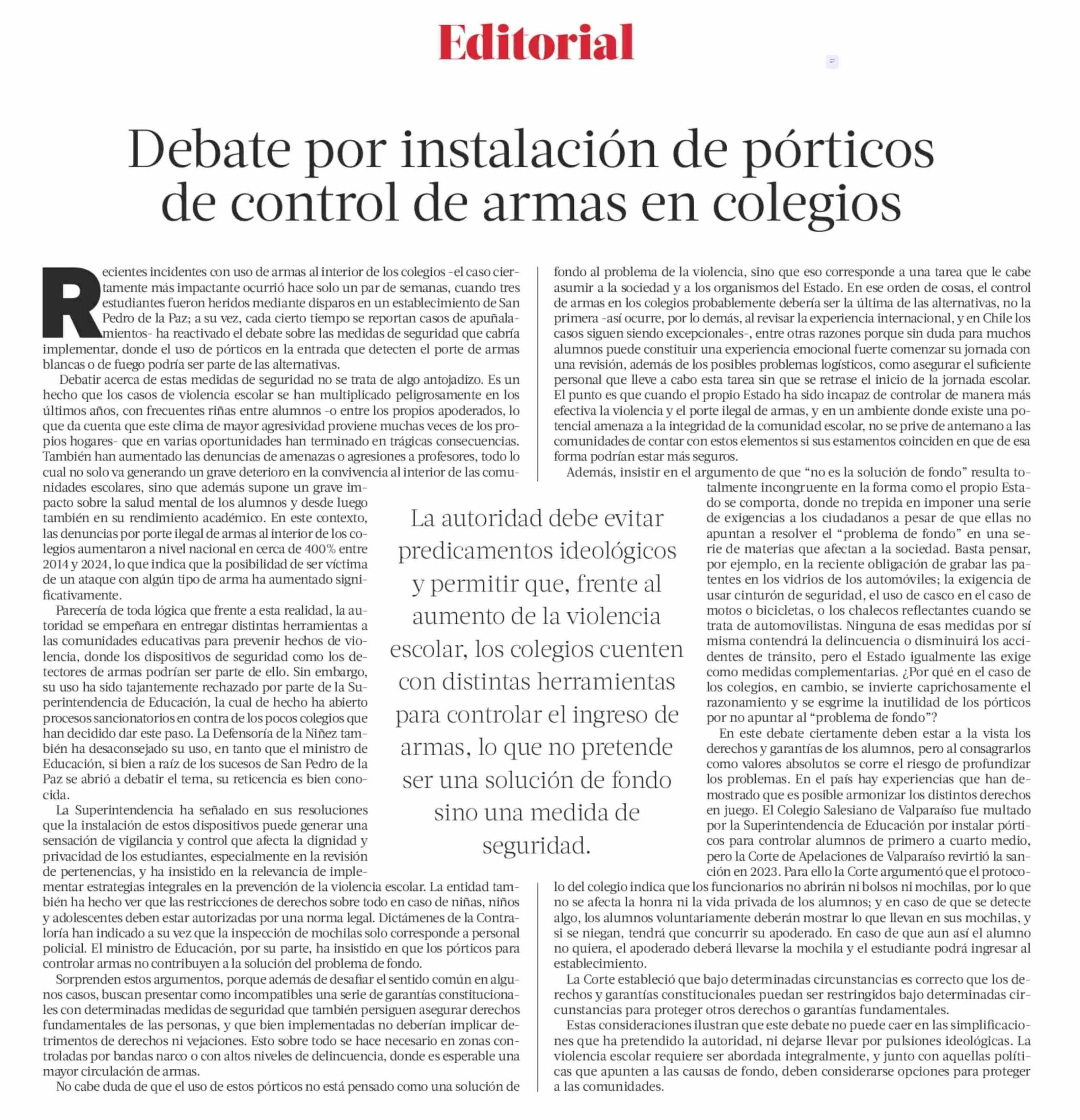 EDITORIAL: Debate por instalación de pórticos de control de armas en colegios 14-06-2025 La Tercera |