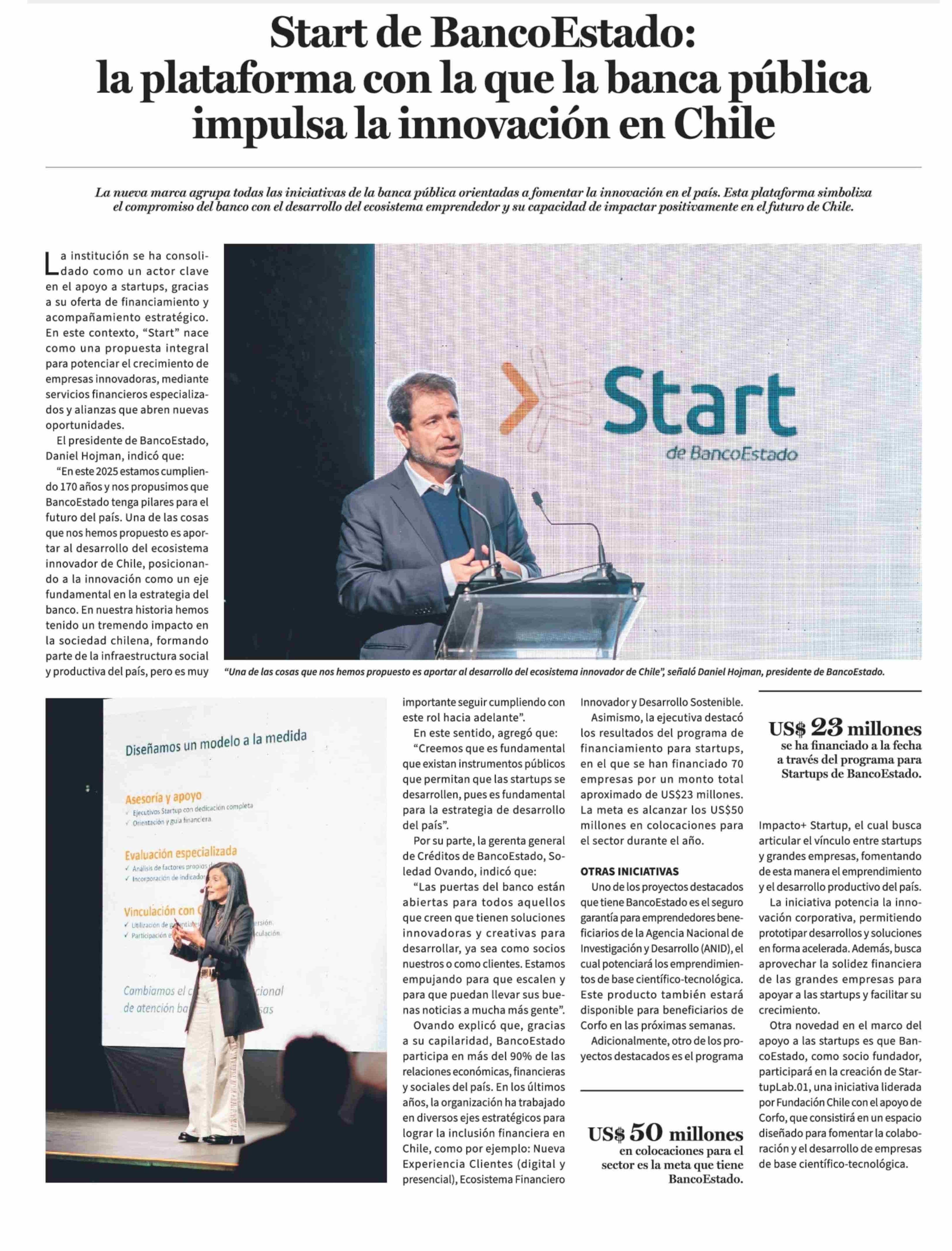 Start de BancoEstado: la plataforma con la que la banca pública impulsa la innovación en Chile 01-06-2025 La Tercera |