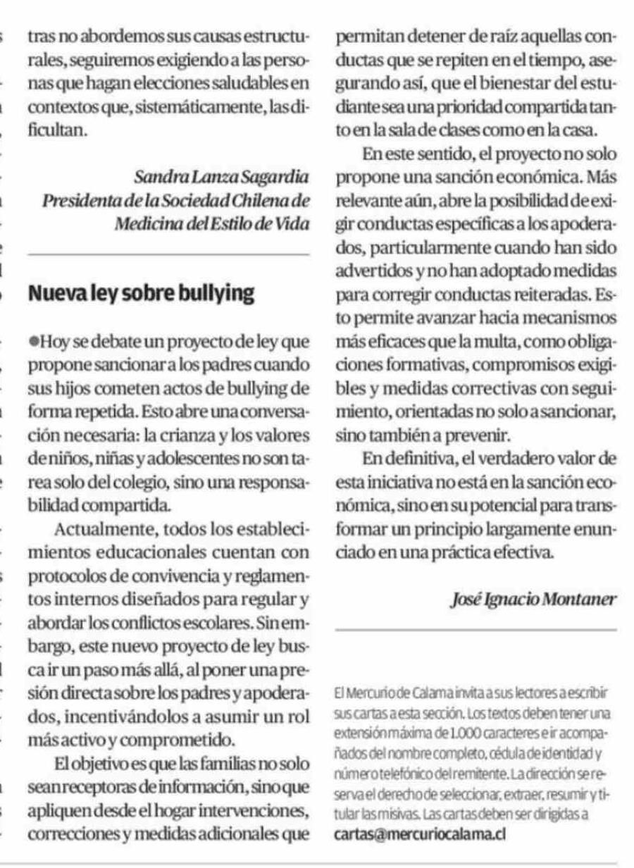 Cartas: Nueva ley sobre bullying 15-04-2026 El Mercurio de Calama |