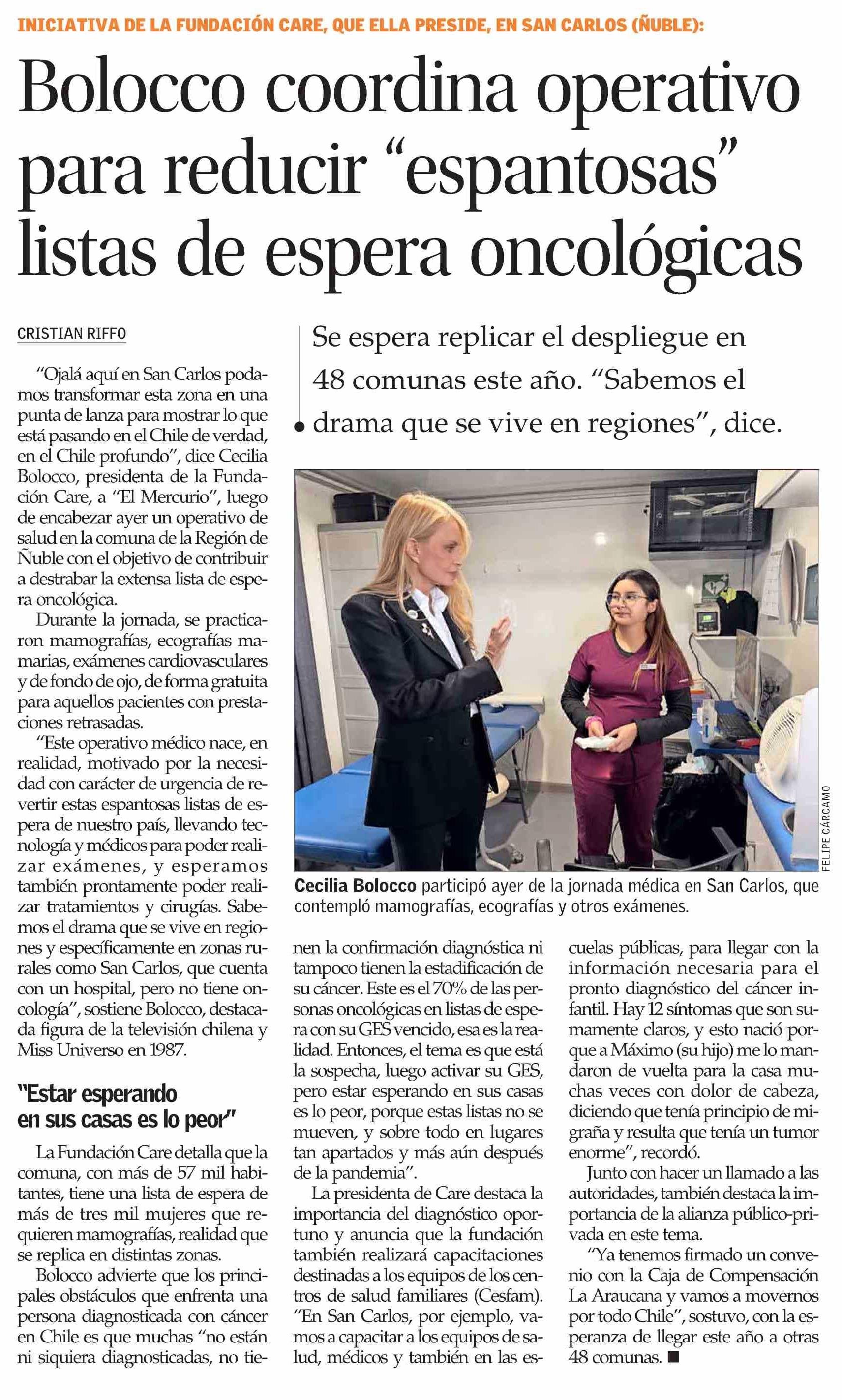 Bolocco coordina operativo para reducir “espantosas” listas de espera oncológicas 11-06-2025 El Mercurio |