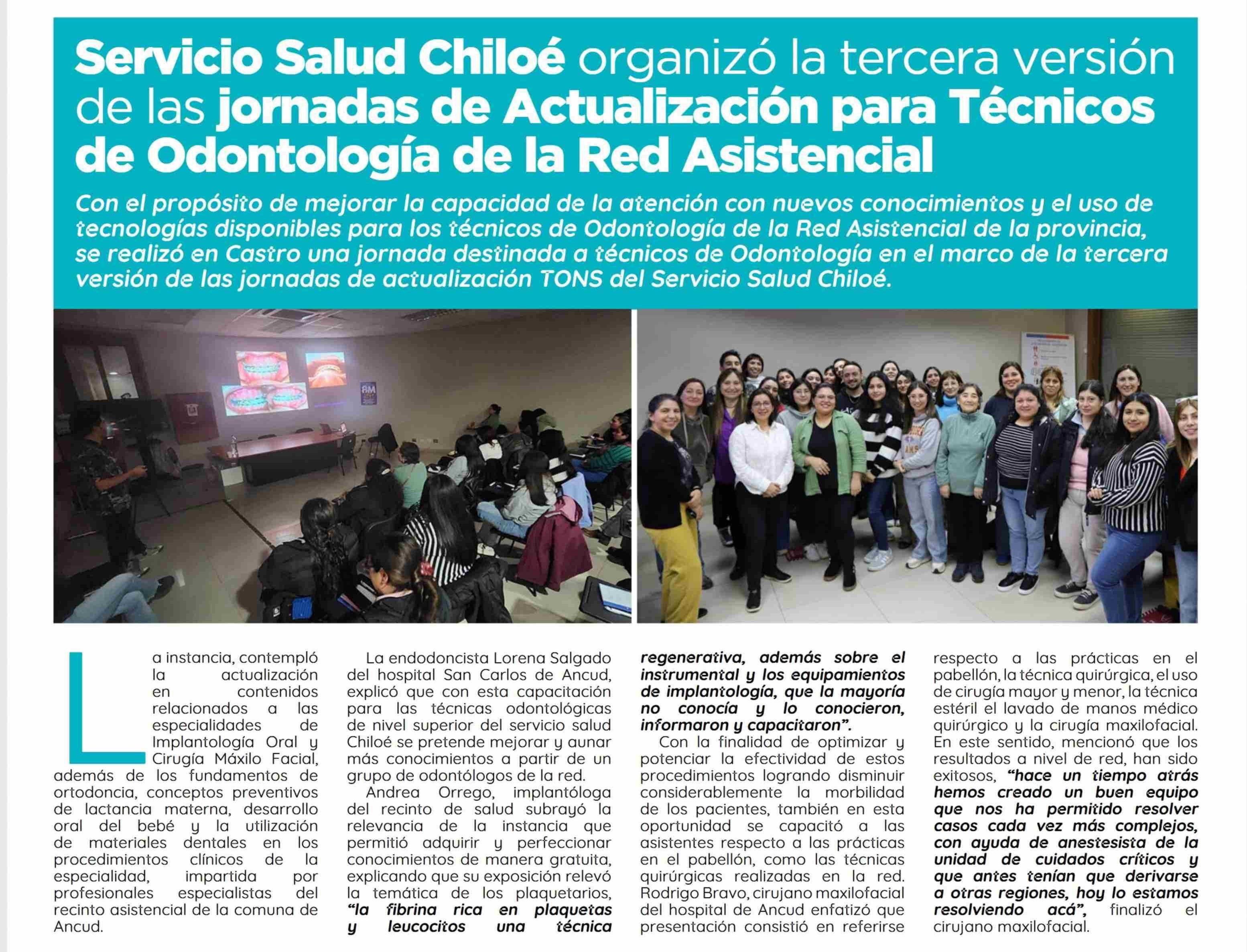 | Título: | Servicio Salud Chiloé organizó la tercera versión de las jornadas de Actualización para Técnicos de Odontología de la Red Asistencial |