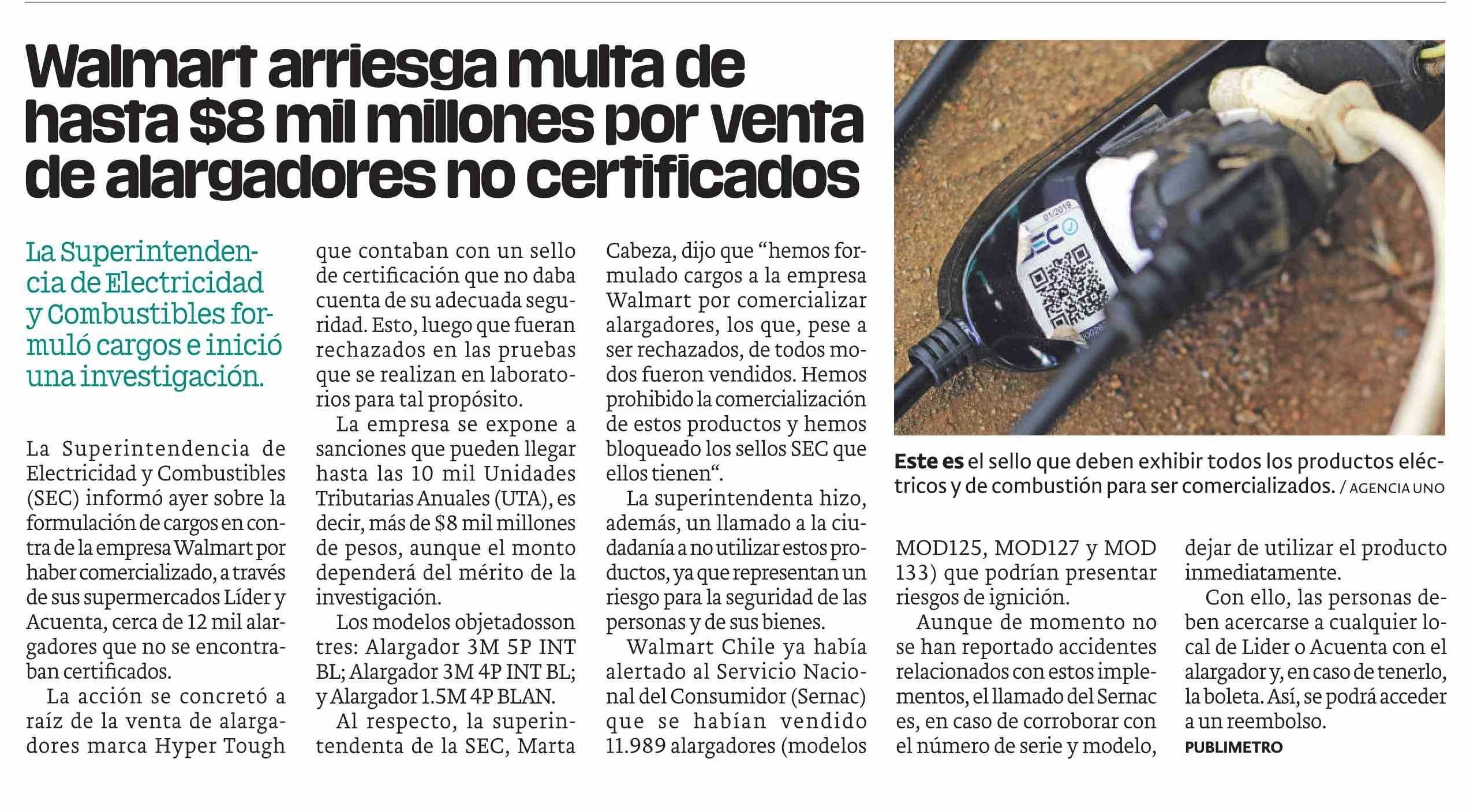 Walmart arriesga multa de hasta $8 mil millones por venta de alargadores no certificados 19-06-2025 Publimetro |