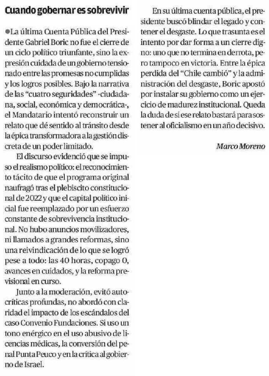 Cuando gobernar es sobrevivir 05-06-2025 El Mercurio de Calama |
