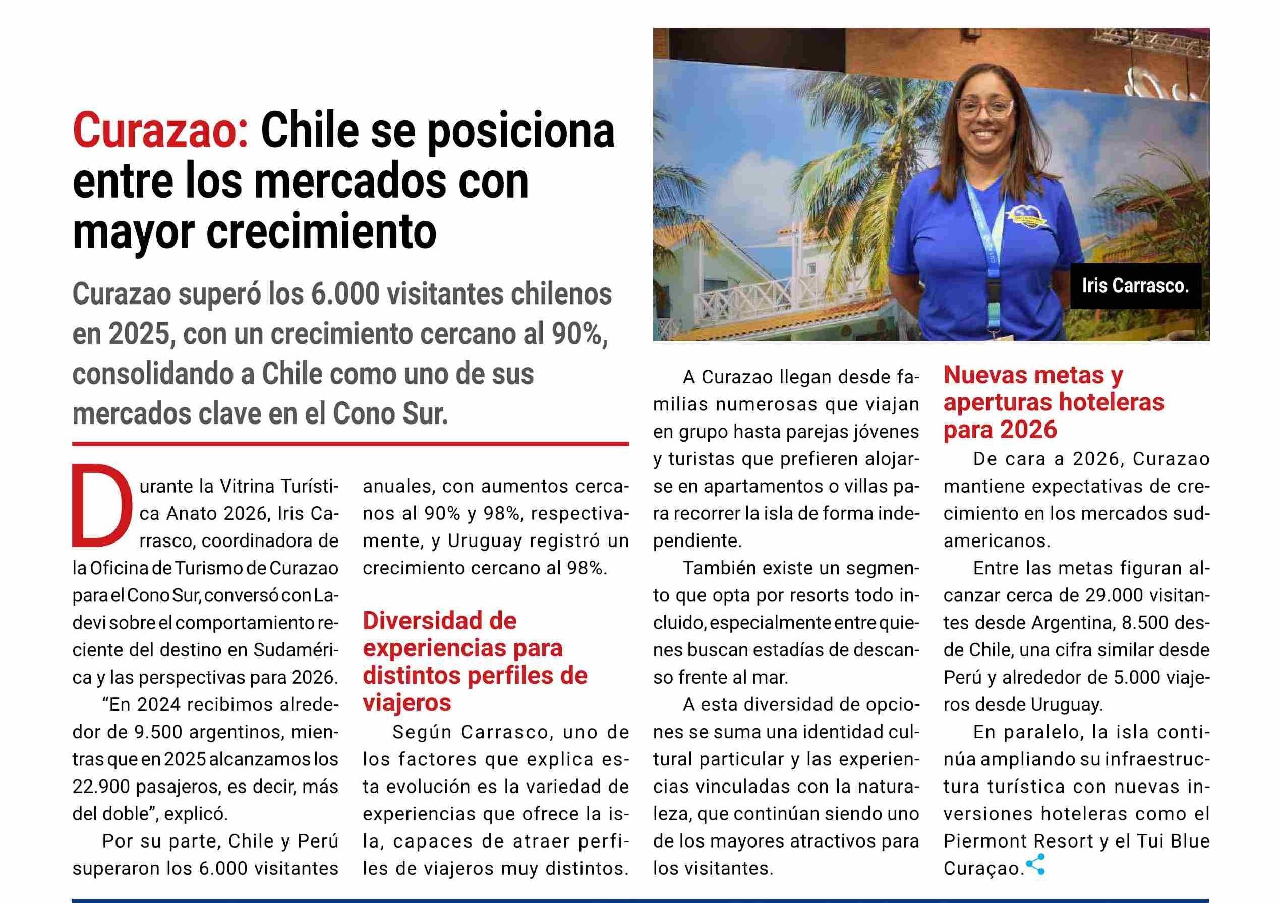 Curazao: Chile se posiciona entre los mercados con mayor crecimiento 27-03-2026 Revista La Agencia de Viajes |