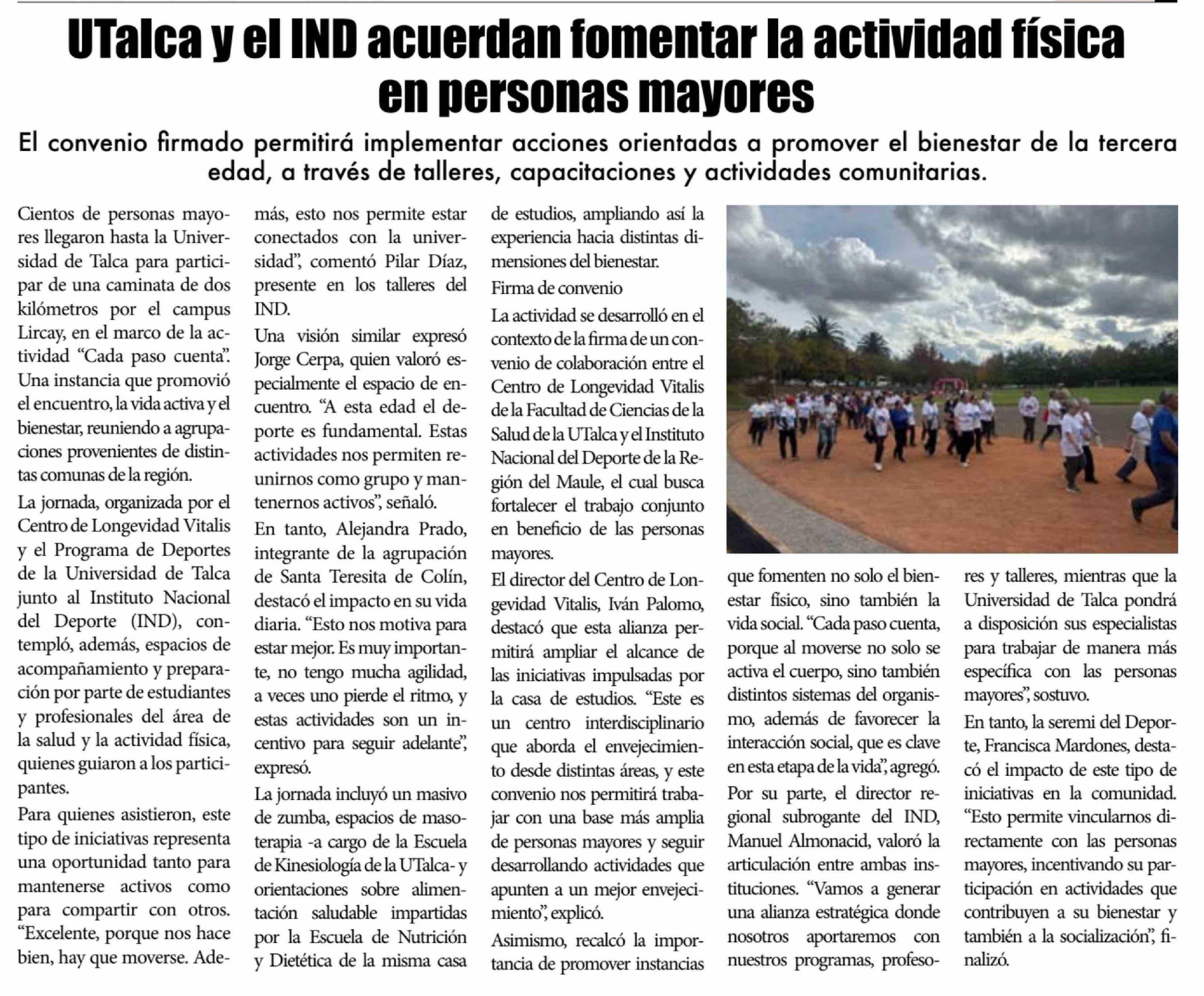 UTalca y el IND acuerdan fomentar la actividad física en personas mayores 23-04-2026 El Lector |